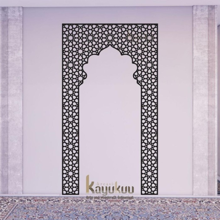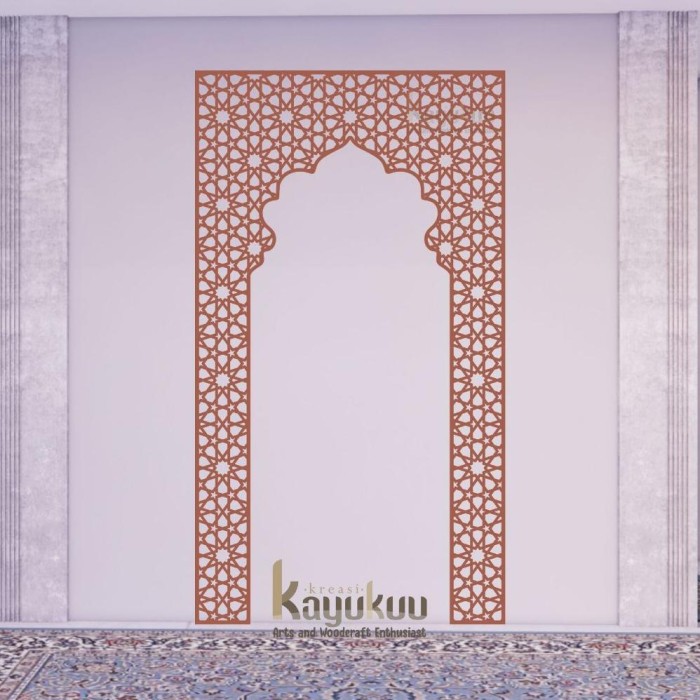 KREASIKAYUKUU HIASAN DINDING "MIHRAB MUSHOLA" DEKORASI MINIMALIS BAHAN - 83CM X 123CM, COKLAT KAYU