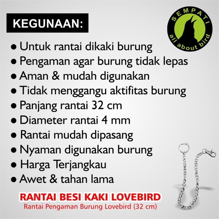 RANTAI BURUNG TALI BURUNG FREE FLY FF RANTAI RING KAKI LOVE BIRD RTBLB