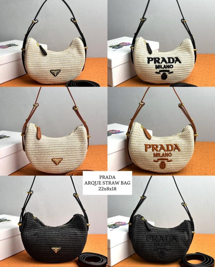 TAS PRADA ARQUE STRAWBAG PREMIUM/TAS WANITA PRD ANYAM 22CM/SHOULDERBAG/SLINGBAG TAS BRANDED TERBARU