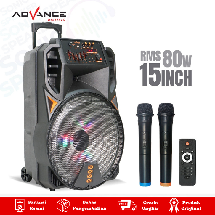 speker bluetooth portable karoke 15 inch bonus 2 mic wireles original , TERMURAH