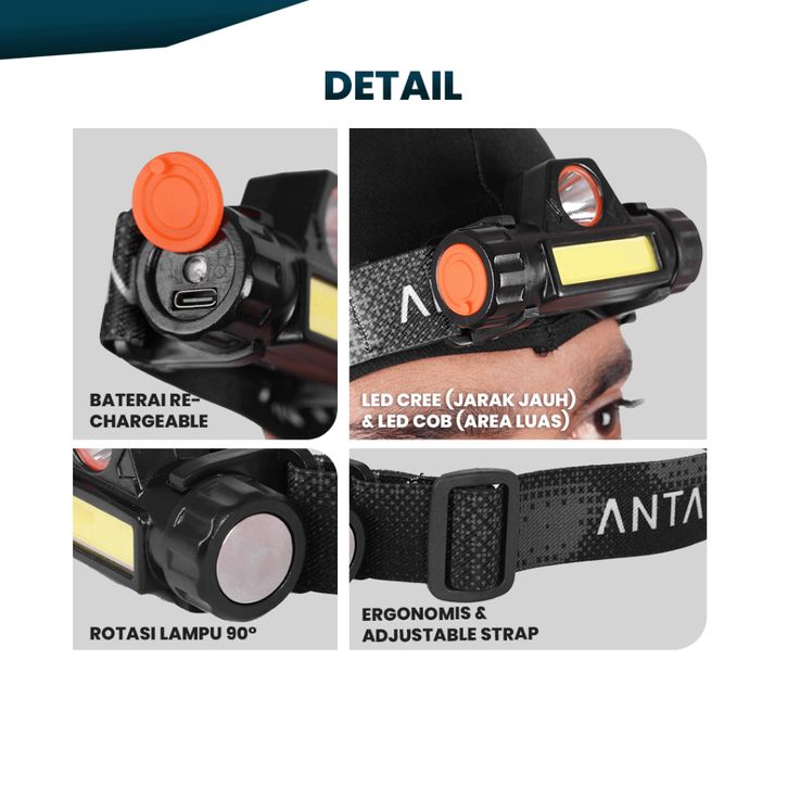 Senter Kepala Mini Head Lamp Led Cob Lampu Kepala Super Terang Rechargeable Plus Magnet Lamp Camping