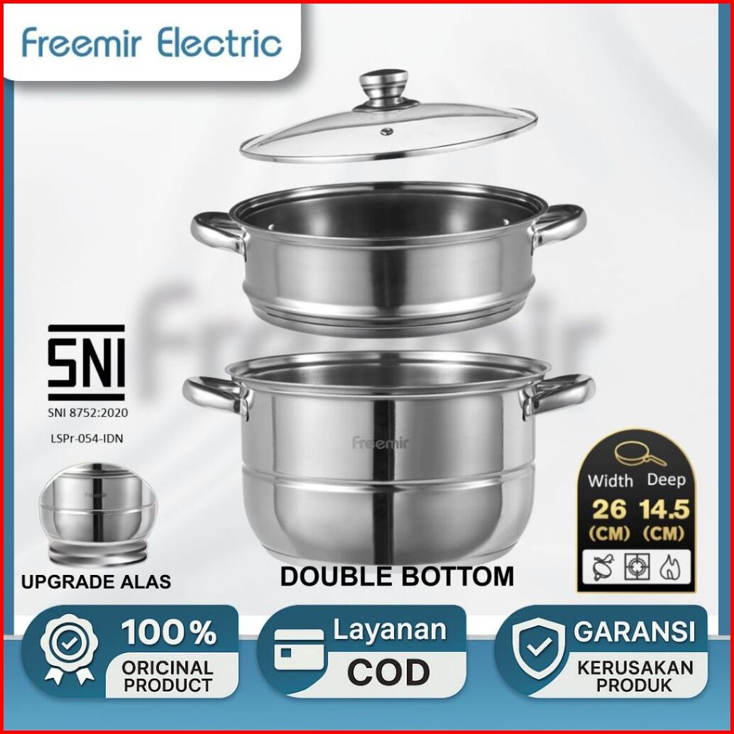 Gratis Piring Freemir Langseng Panci Kukus Panci Rebus Panci Steamer Tingkat 2 Layer Panci Kukusan Stainless Steel Tutup
