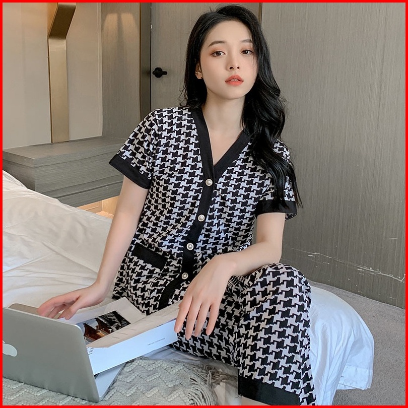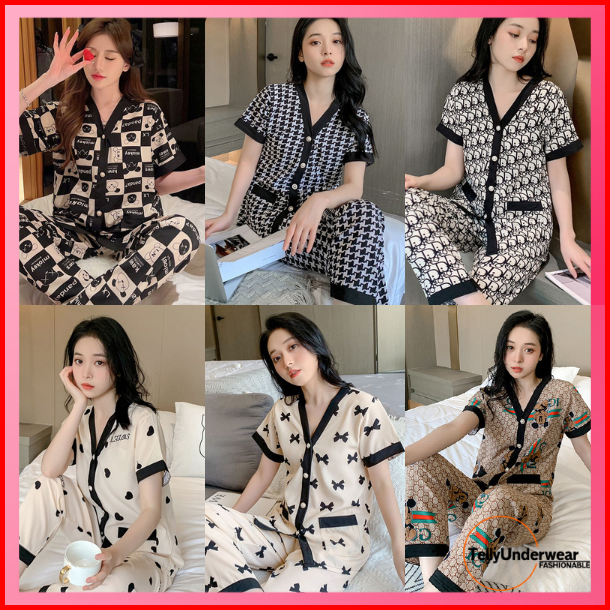 Telly 341 Piyama Wanita Dewasa Model Kancing Depan Mewah Lengan Pendek Celana Panjang Import High Quality Sleepwear