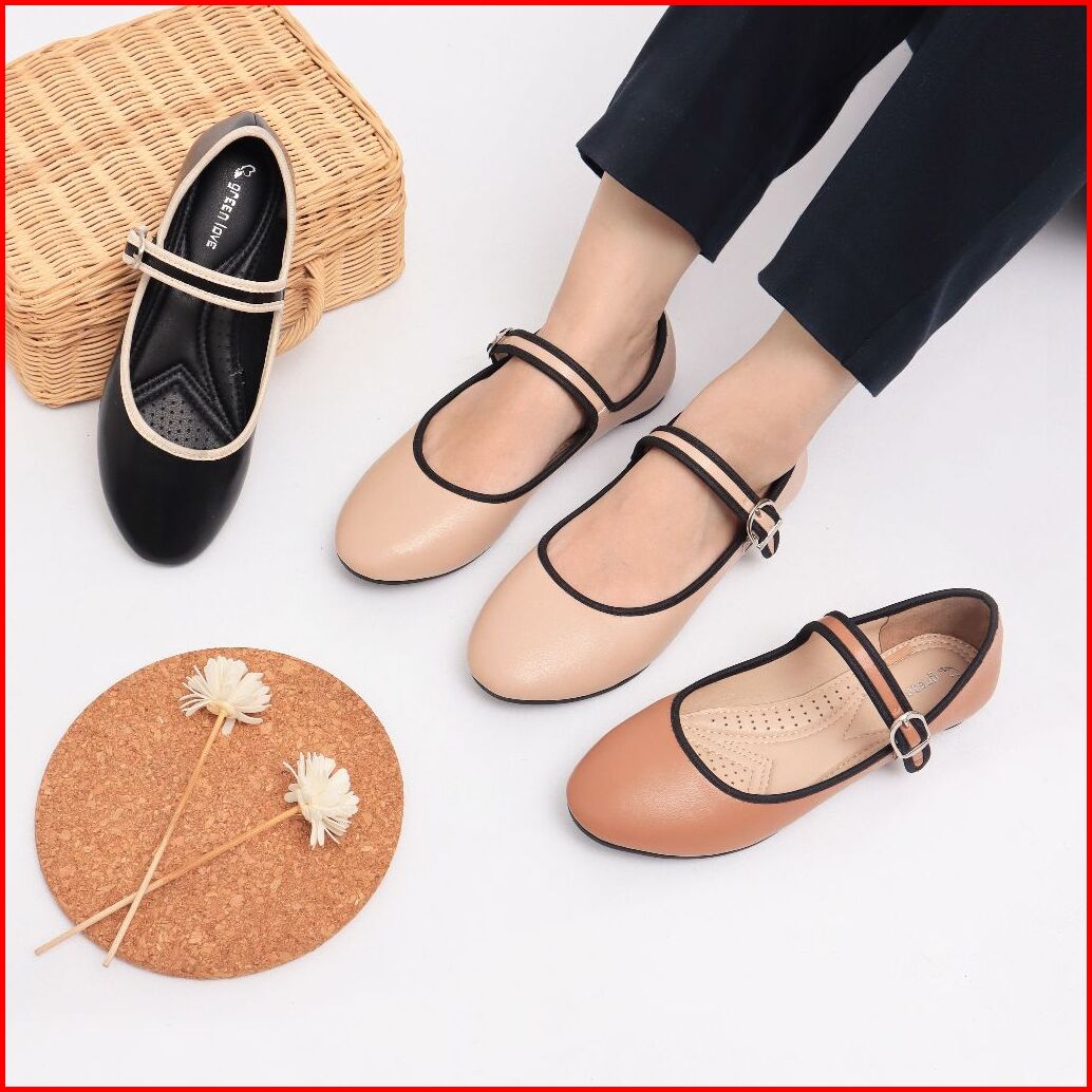 Green Love Sepatu Flatshoes Wanita Olive - Elegant - Kekinian - Korean Style