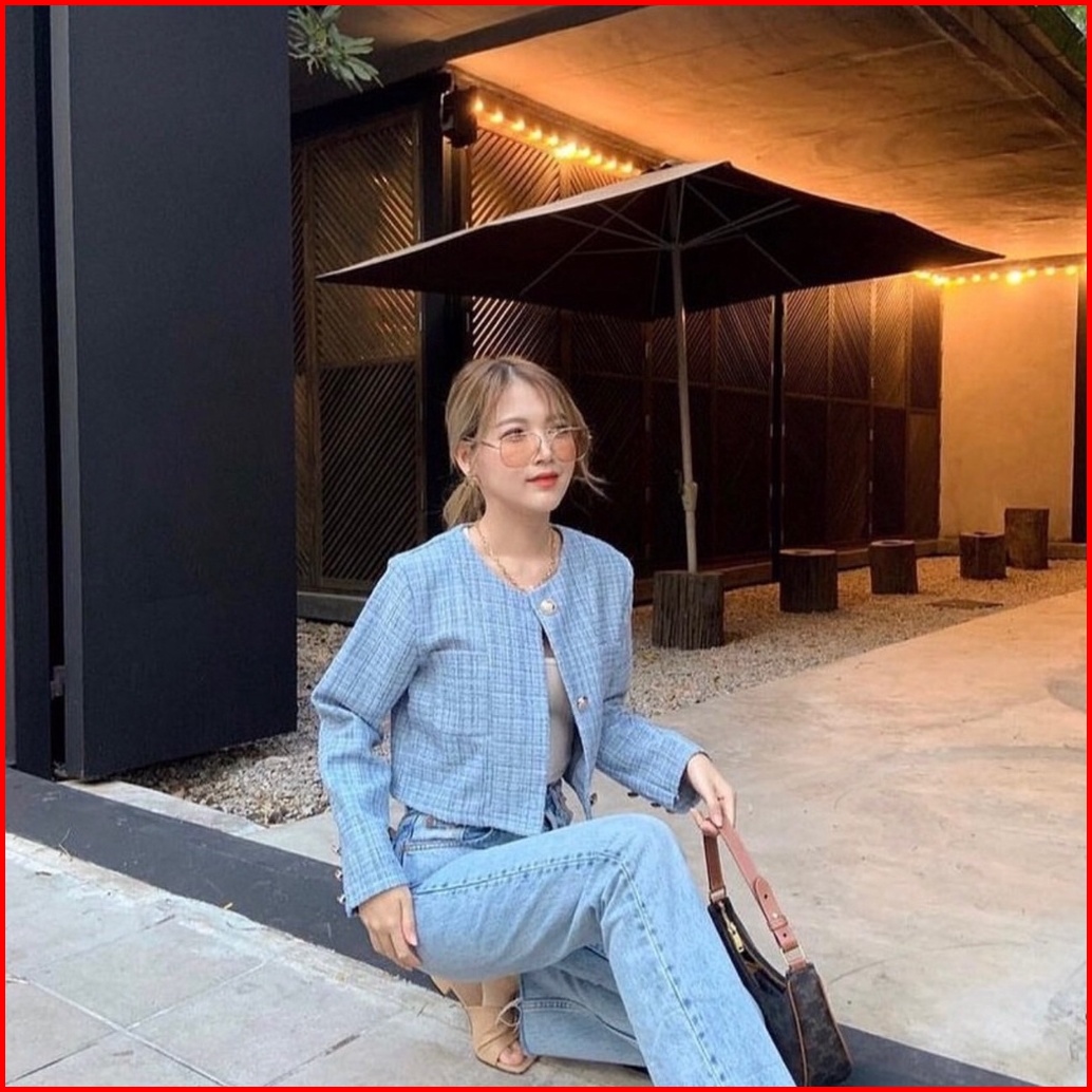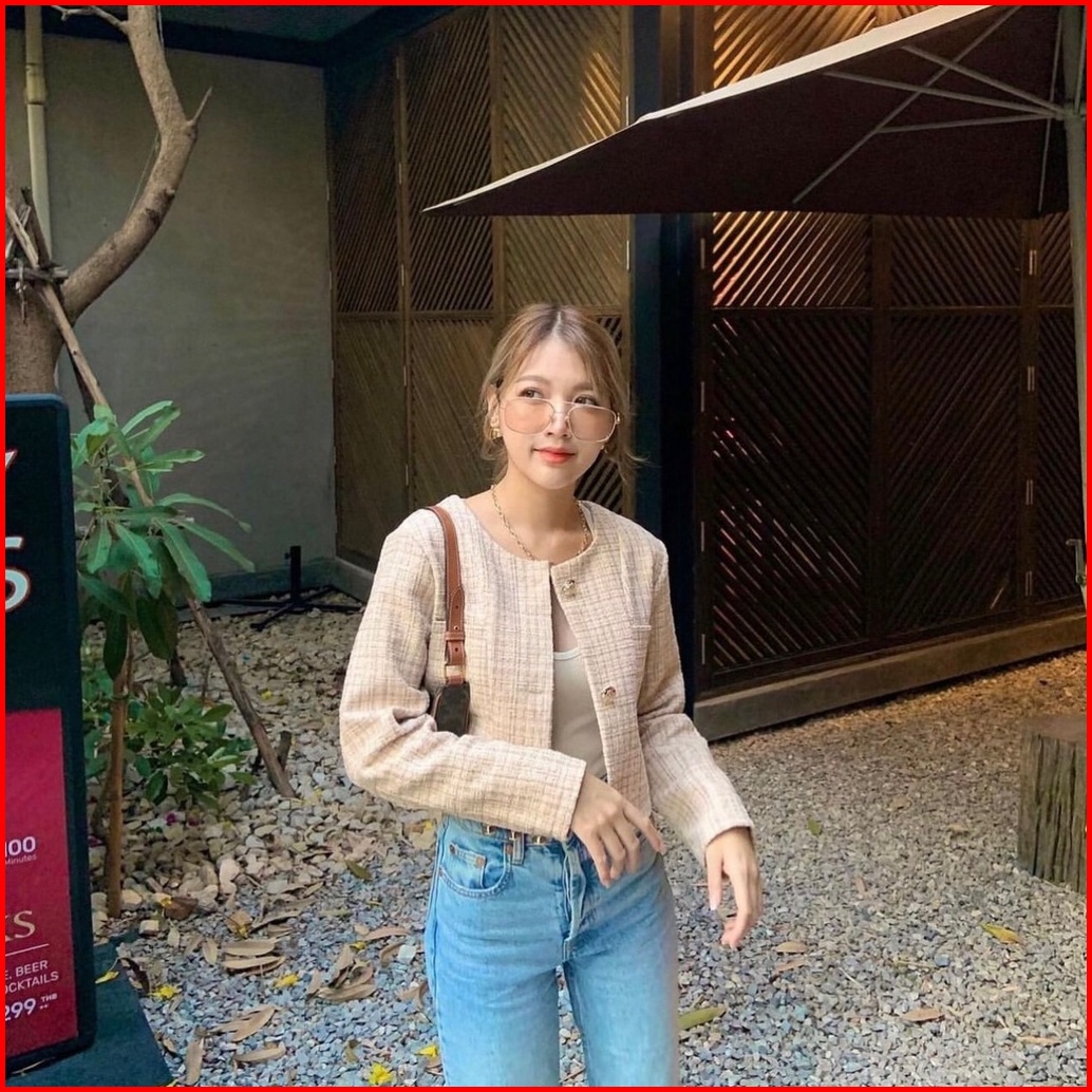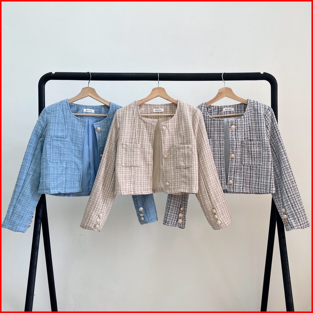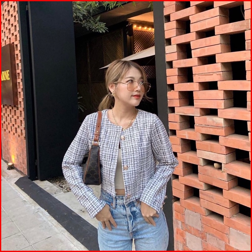 Fg Everyday Look Tweed Blazer B3776 Kotak-kotak Elegan