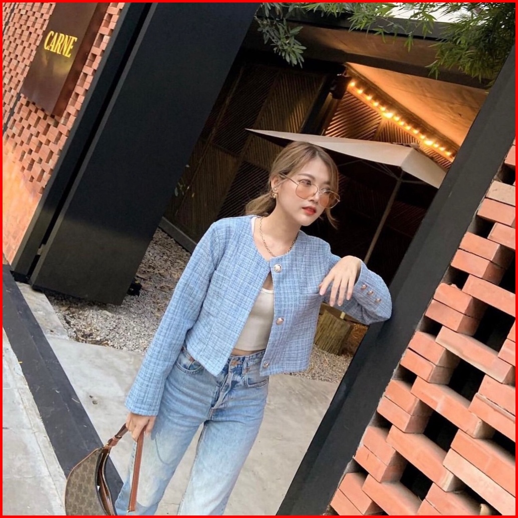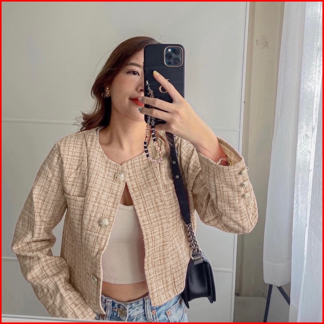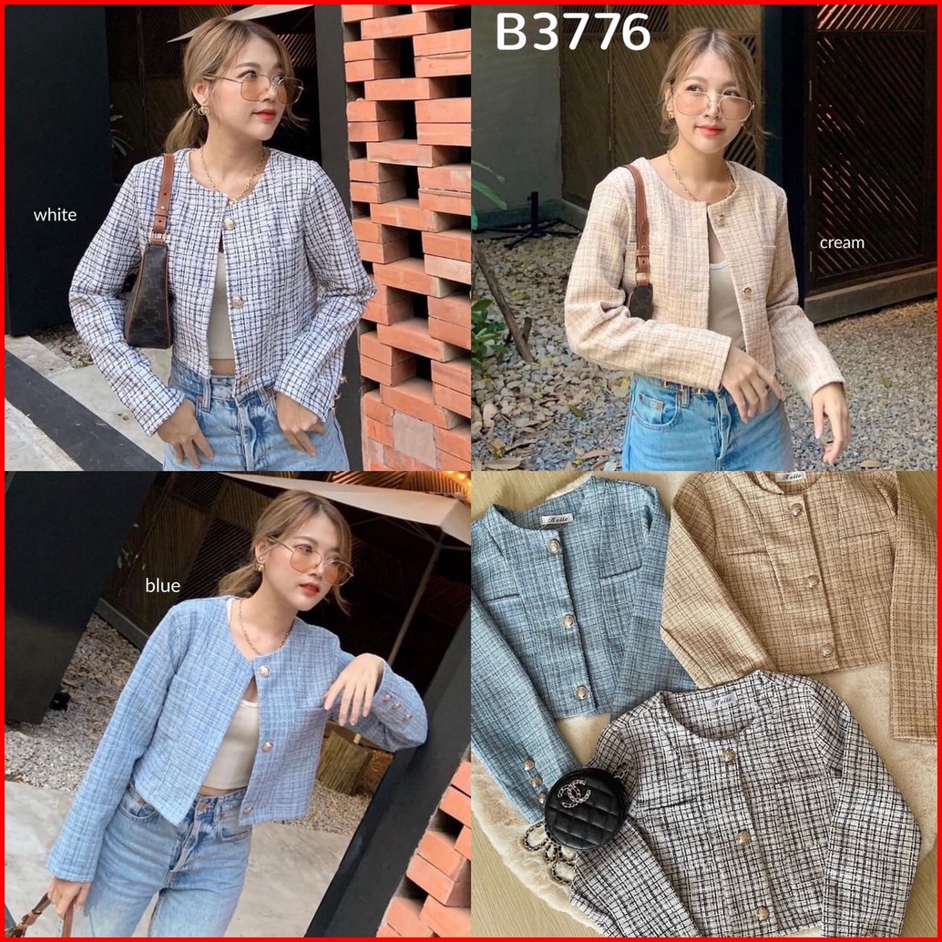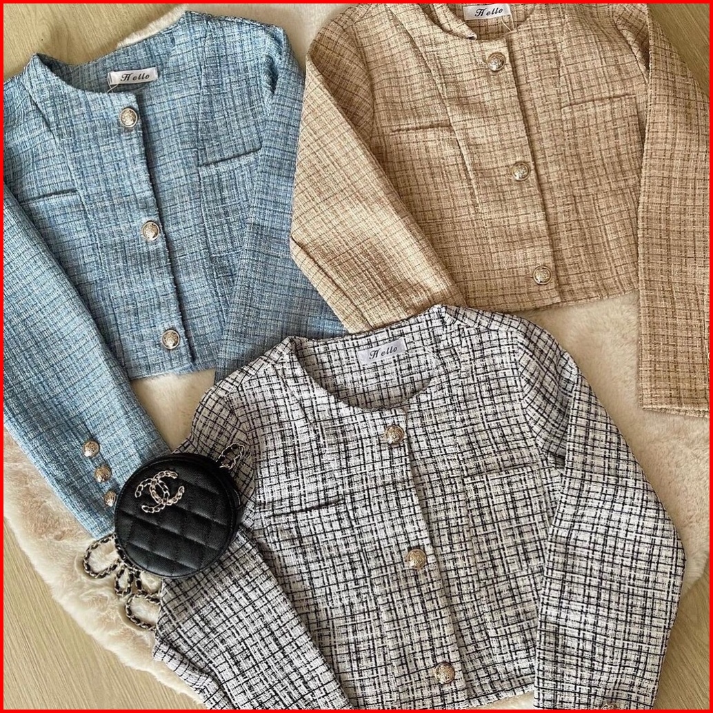 Fg Everyday Look Tweed Blazer B3776 Kotak-kotak Elegan