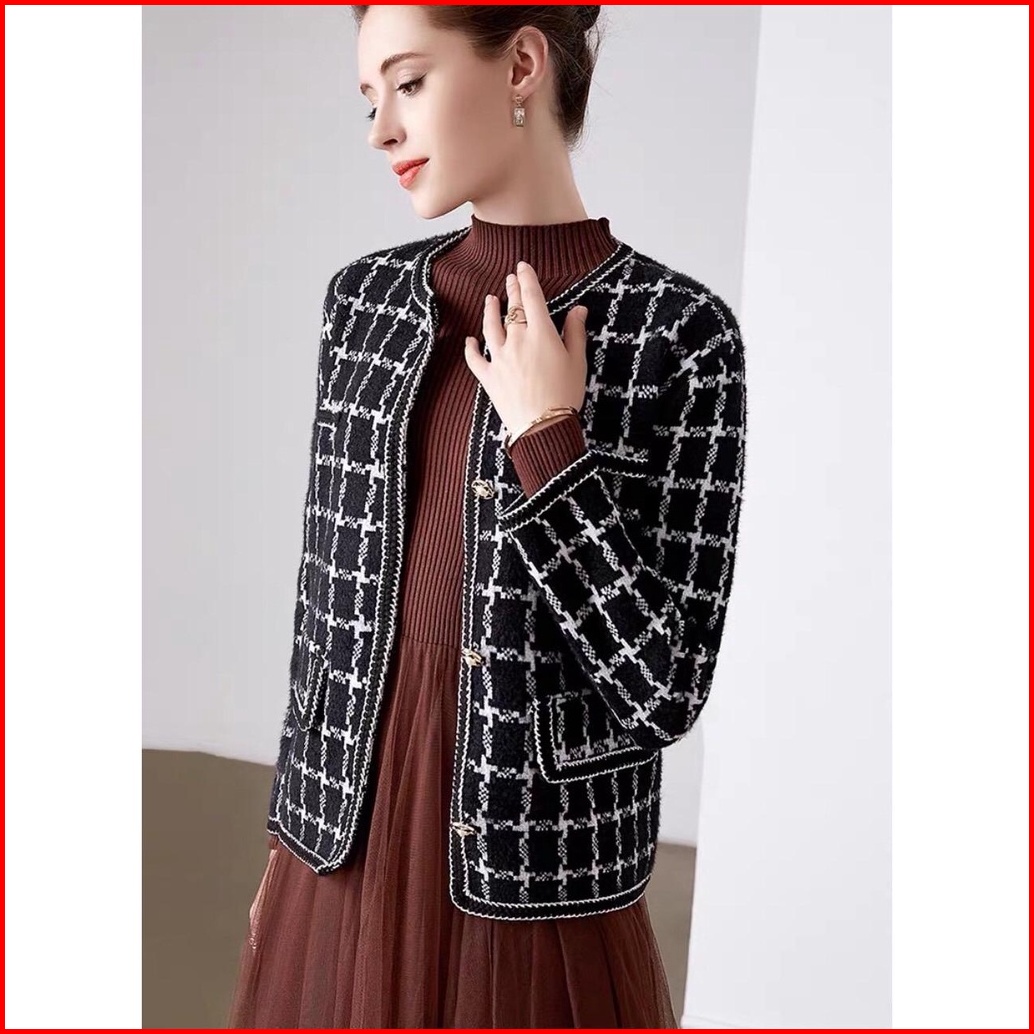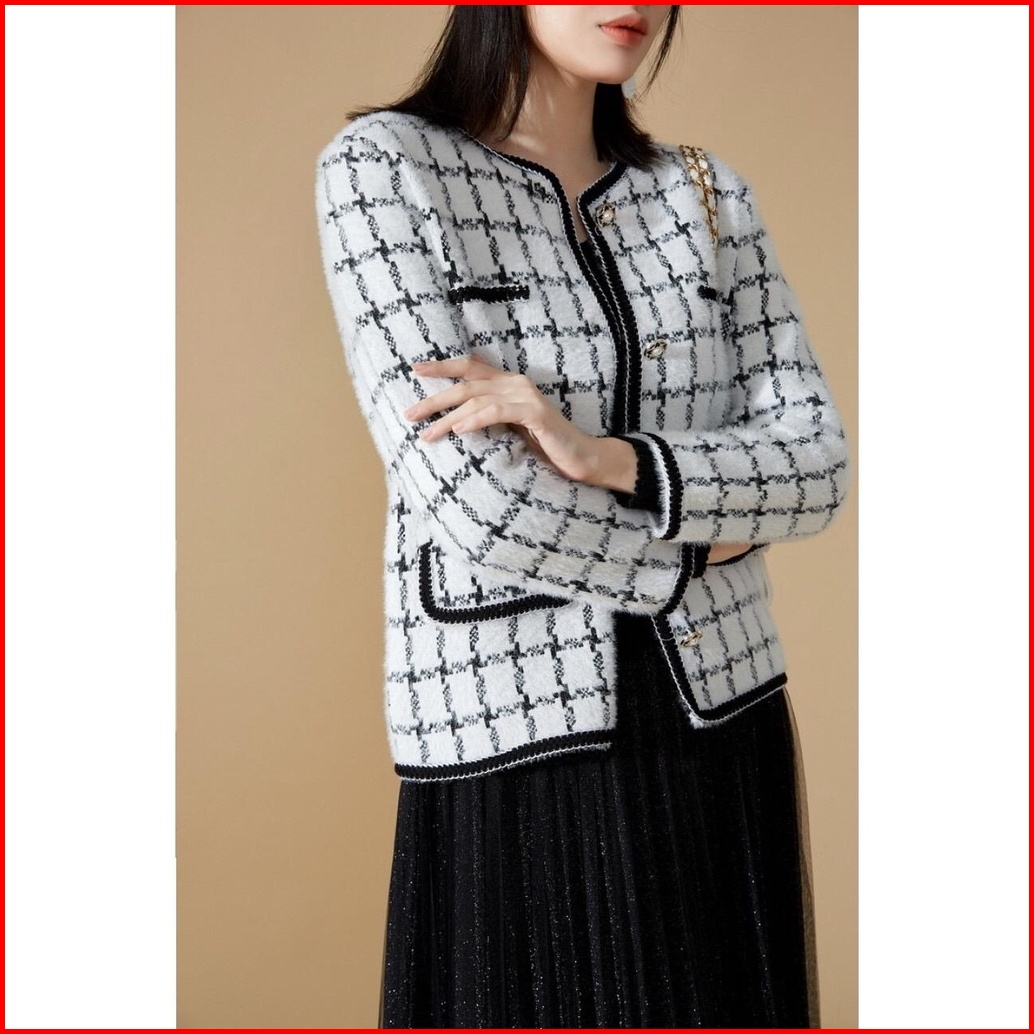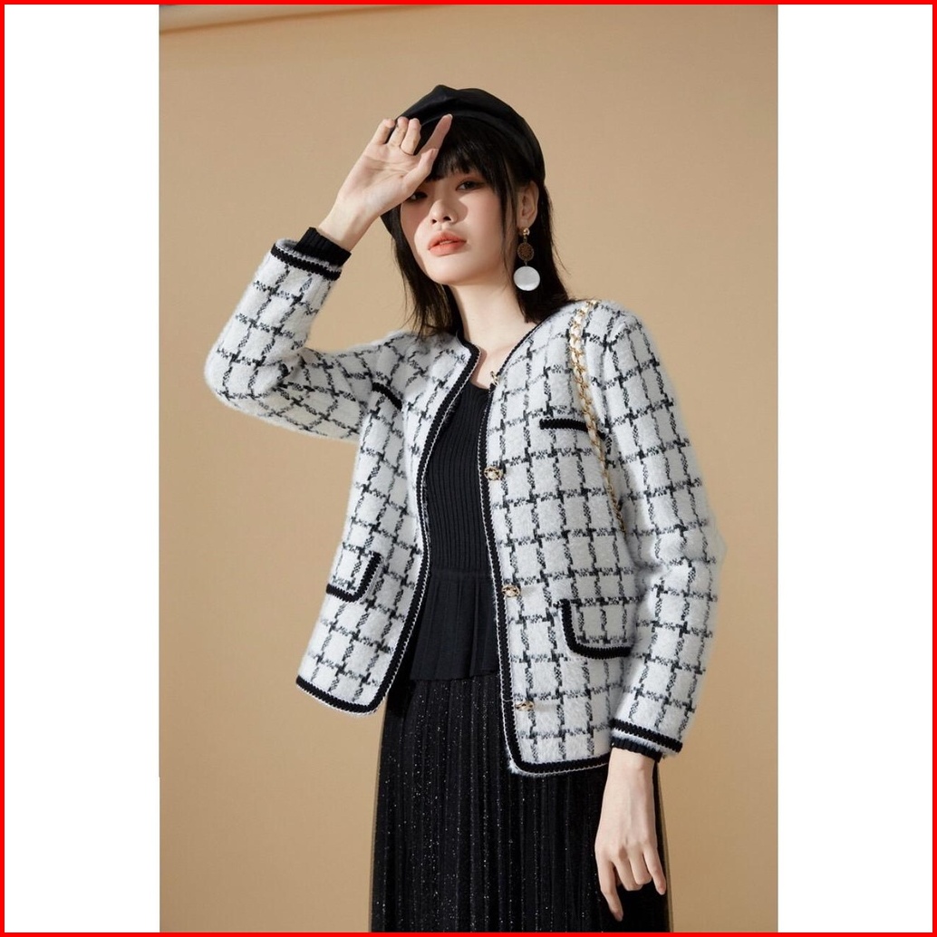 Fg Whitney Elegant Furry Checker Blazer B3872