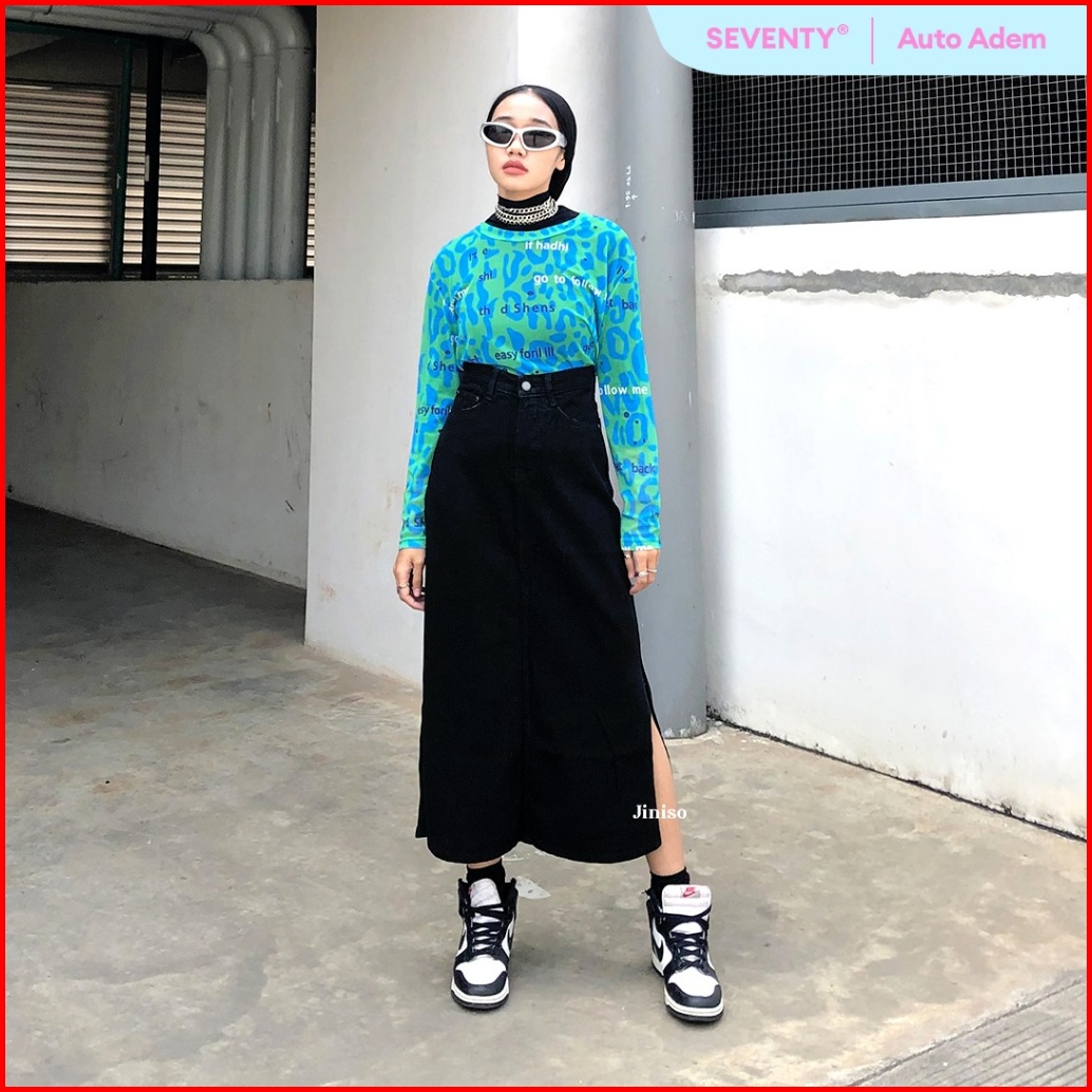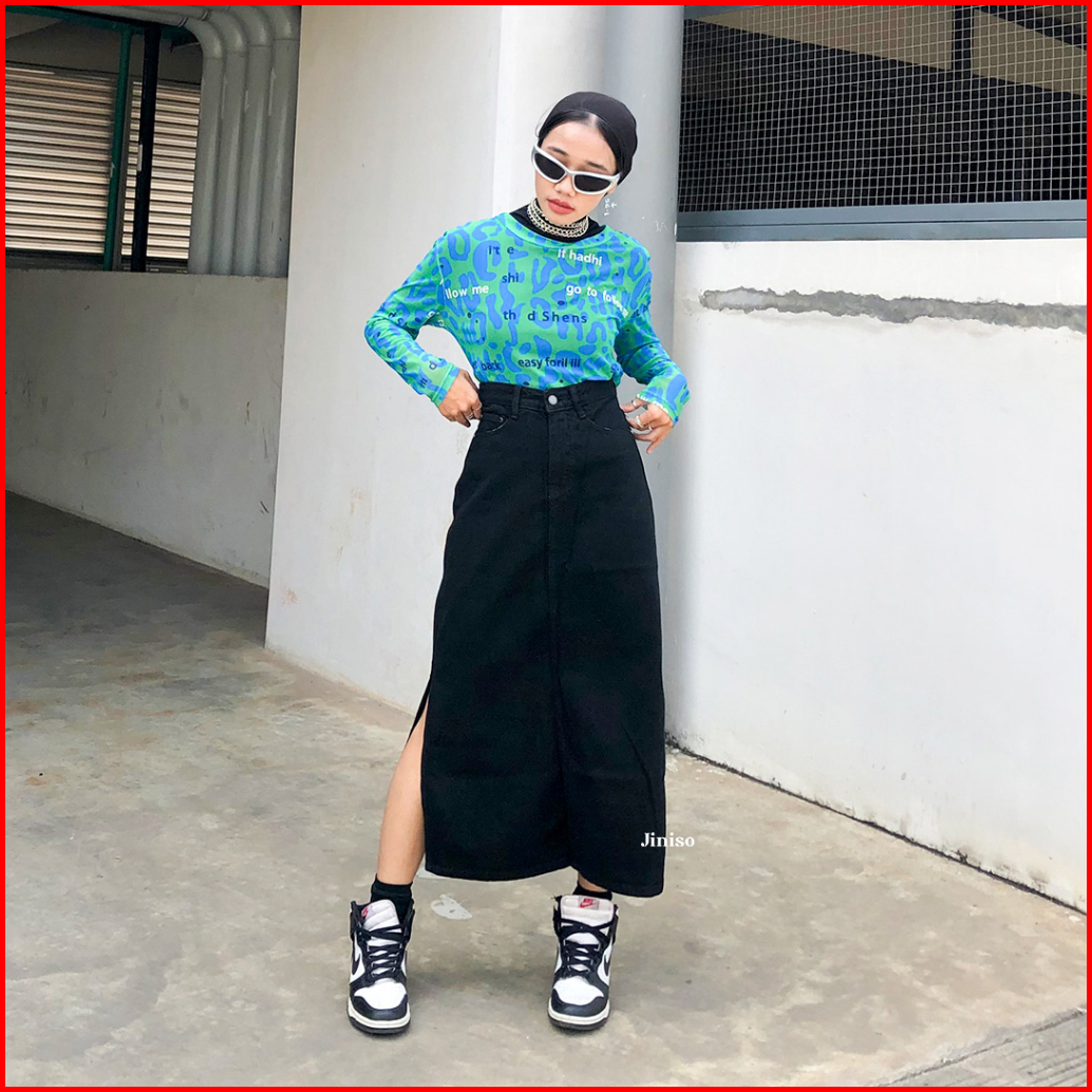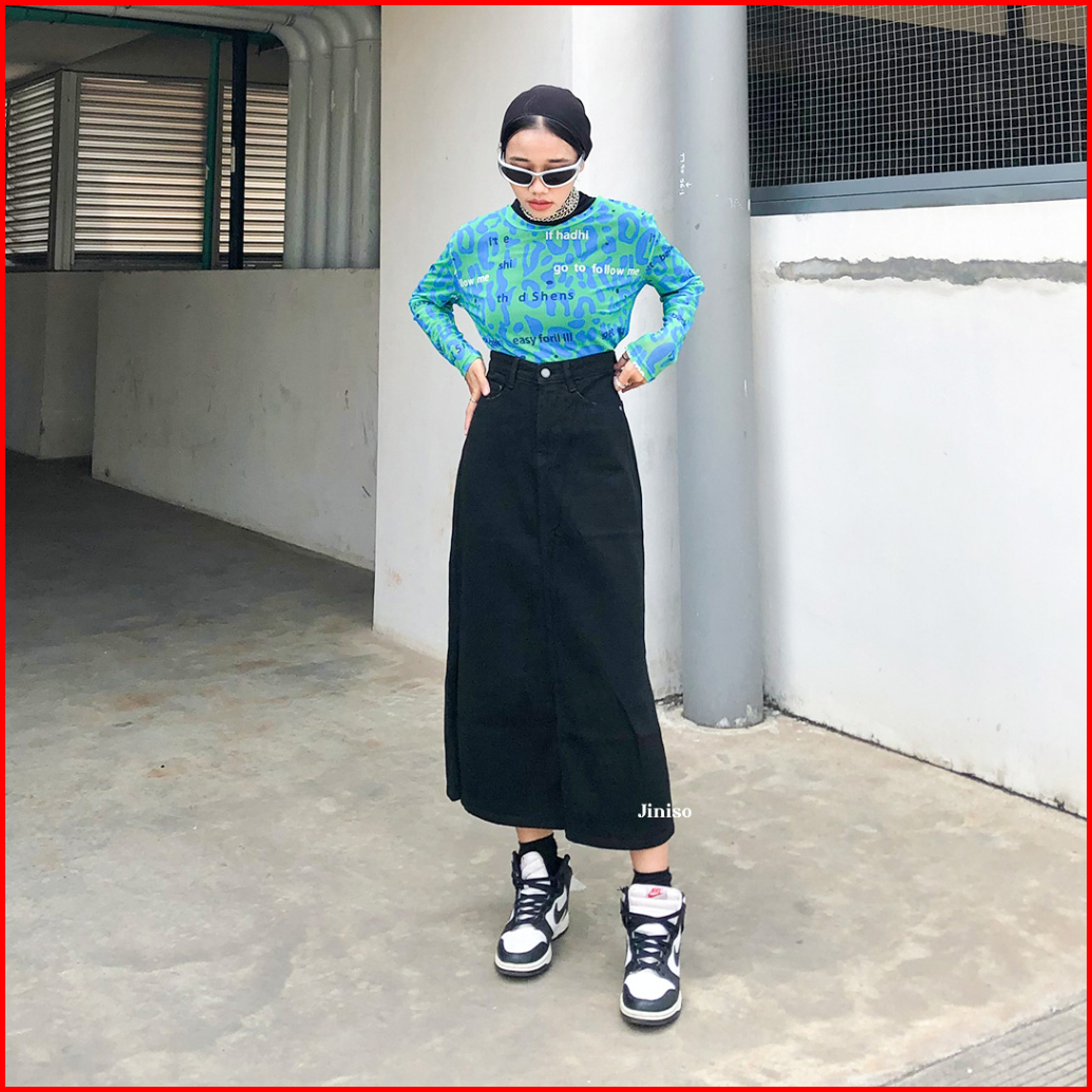 Jiniso - Highwaist Rok Slit Jeans Panjang 994 Seventy