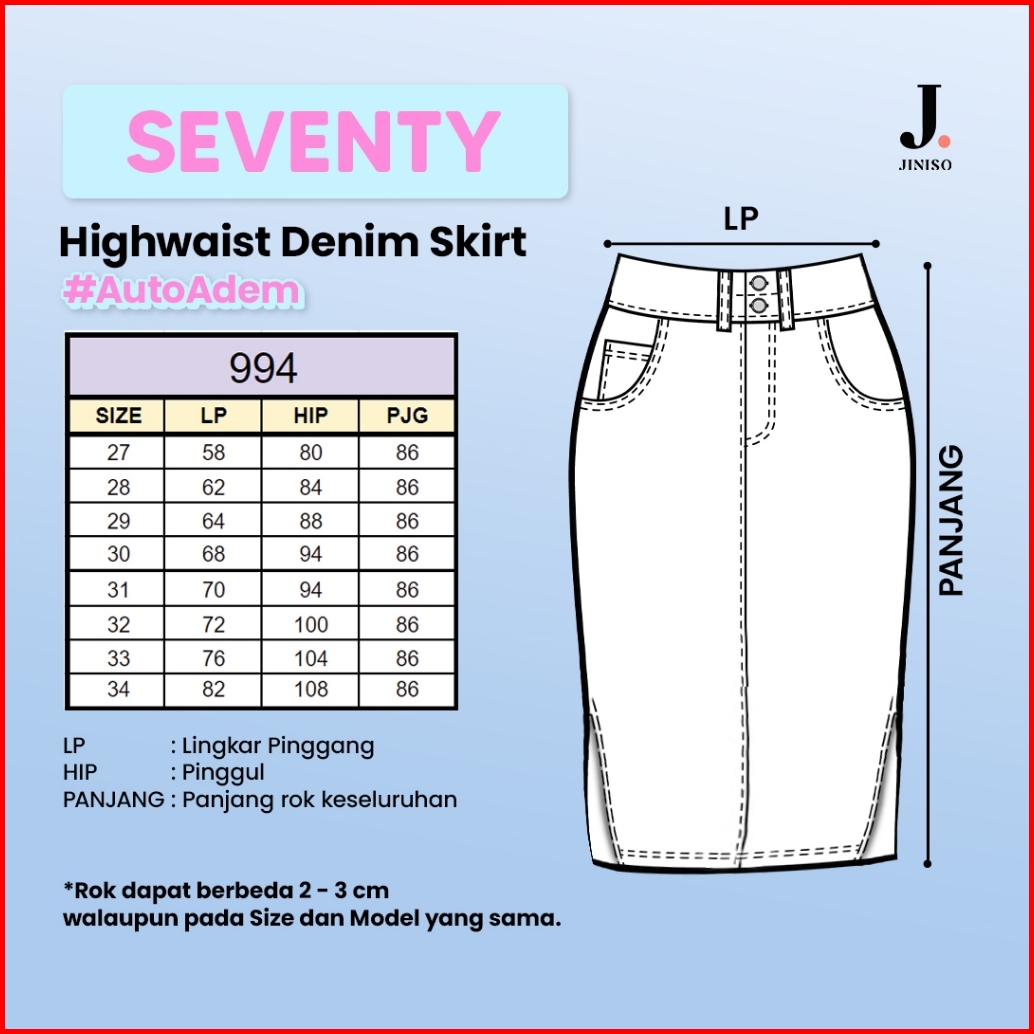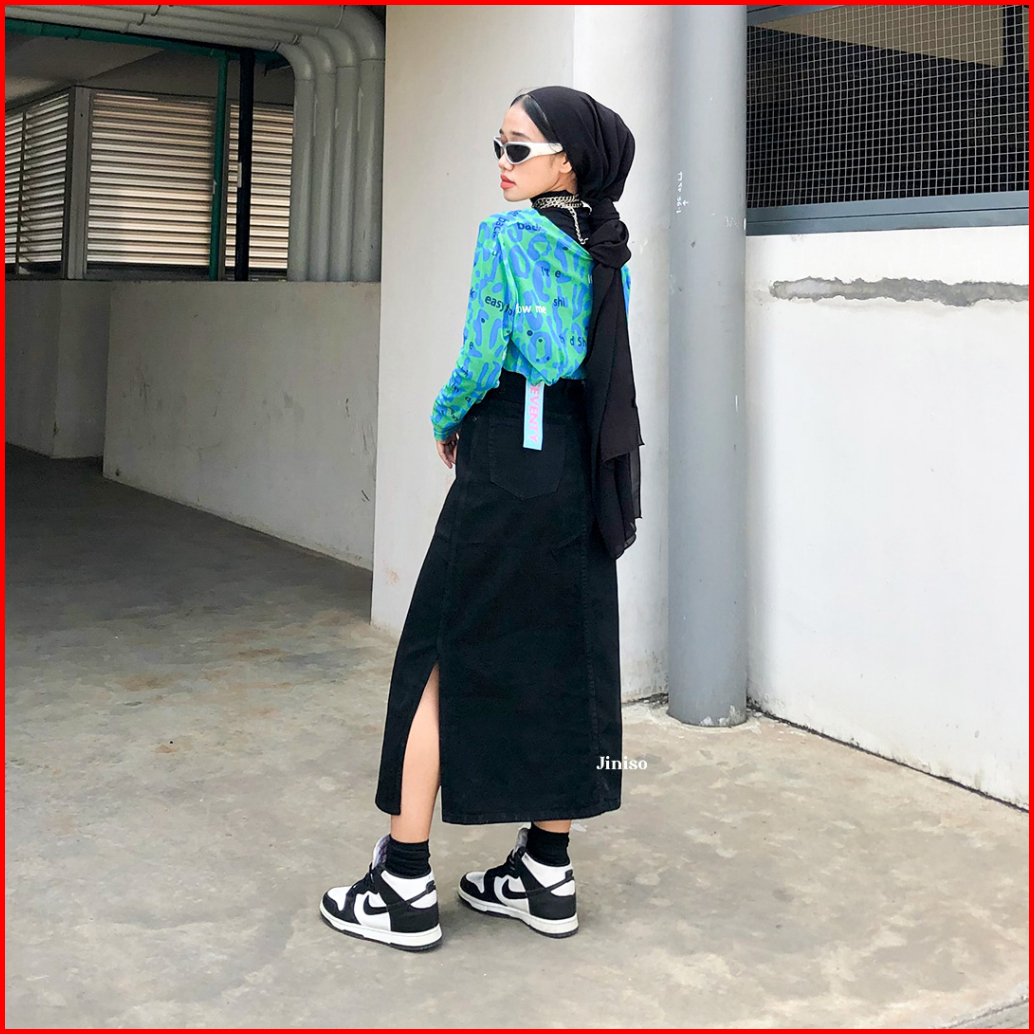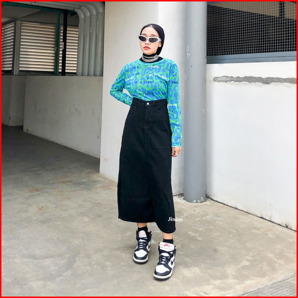 Jiniso - Highwaist Rok Slit Jeans Panjang 994 Seventy