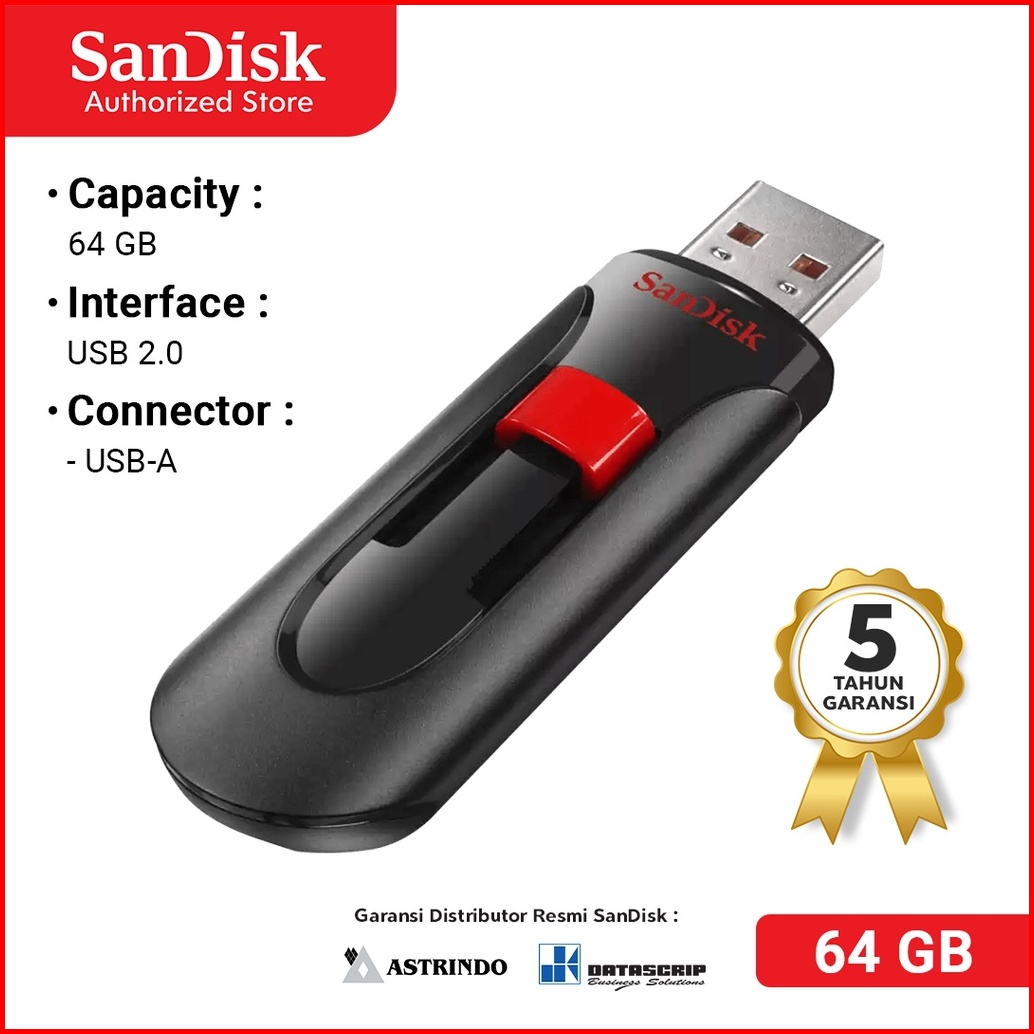 Flashdisk Sandisk 64gb Usb 2.0 Cruzer Glide Cz60 - Garansi Resmi 5 Tahun