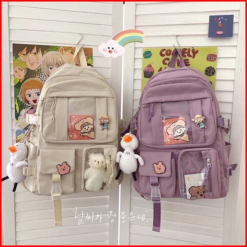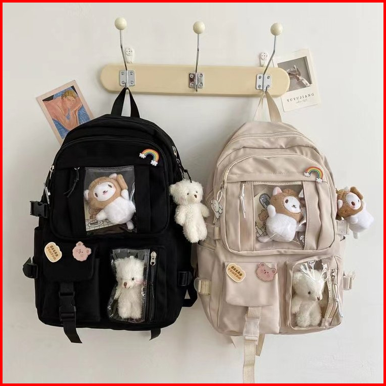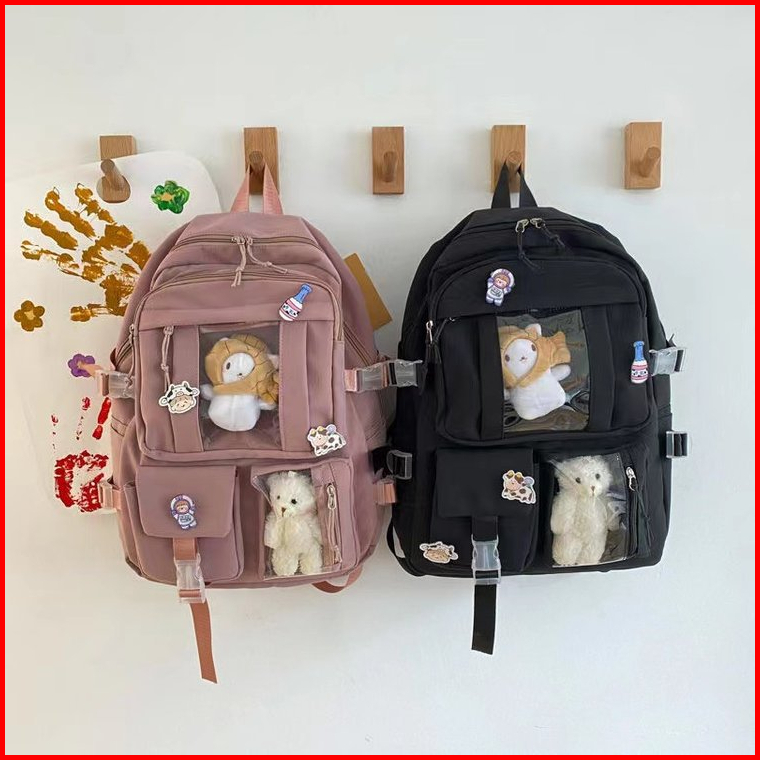 Sale Cuci Gudang Marione - Ransel Sekolah Korea Momoya 100 Import Backpack Import Free Boneka Pin Accesories