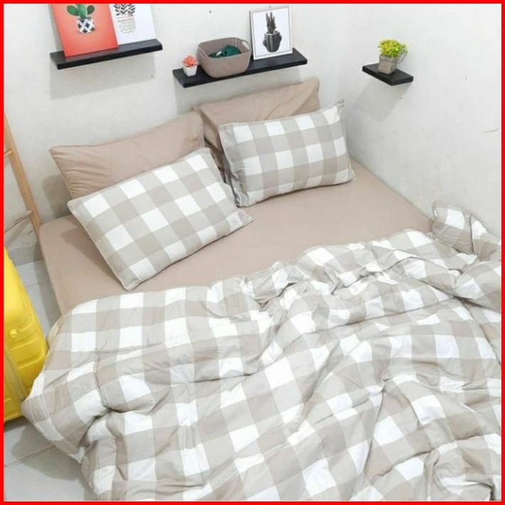 Sungjae Bed Cover Bedcover Saja Motif Aesthetic Emely Khaki 160 X 230 200 X 230