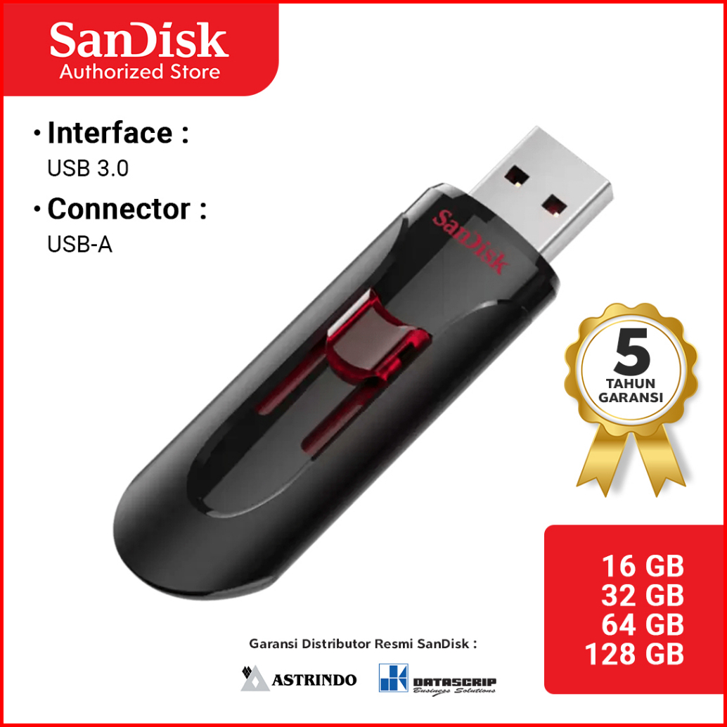 Flashdisk Sandisk 16gb 32gb 64gb 128gb Cruzer Glide Cz600 - Garansi Resmi 5 Tahun