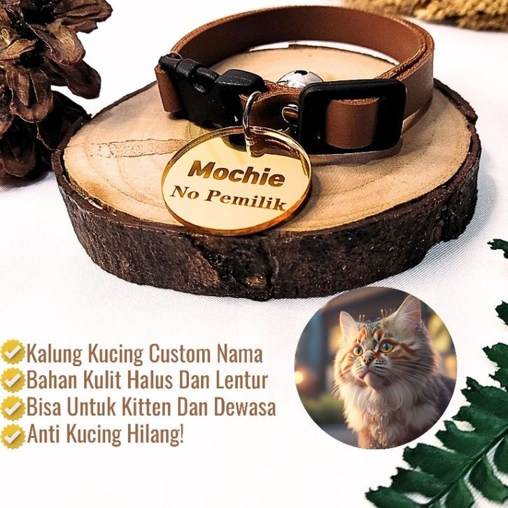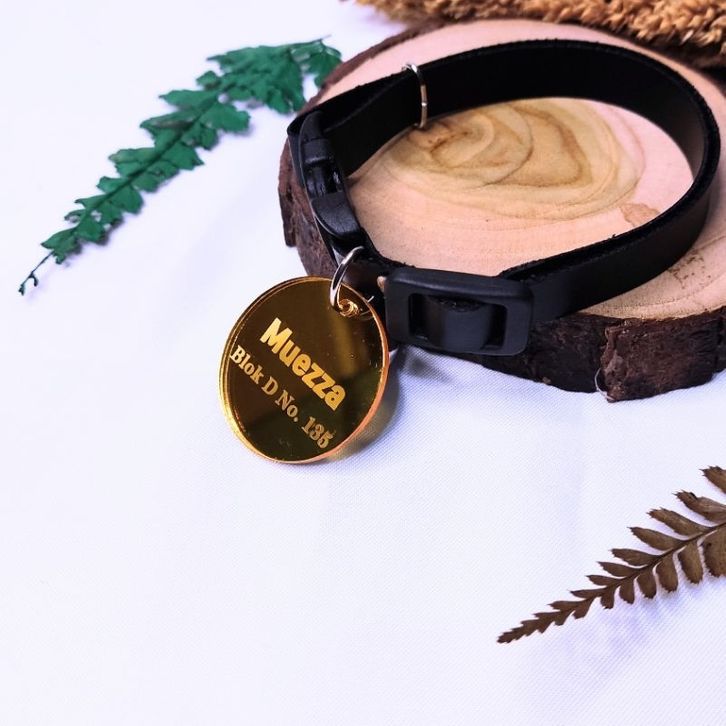 Kalung Kucing Custom Nama Bahan Liontin Akrilik Gold Premium Free Lonceng Nyaring 14mm