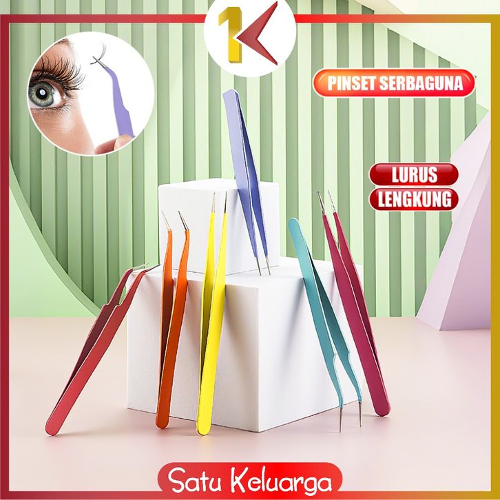 SK-K184 Pinset Bulu Mata Eyelash Extension Pinset Bengkok Serbaguna / Tweezer Lurus Pinset Lengkung / Tweezer Sticker