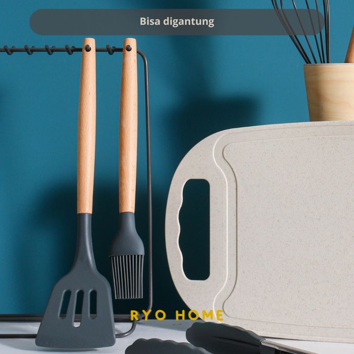 KAI Peralatan Masak Bahan Silikon Dengan Gagang Kayu / Wooden Handle Slotted / Food Grade