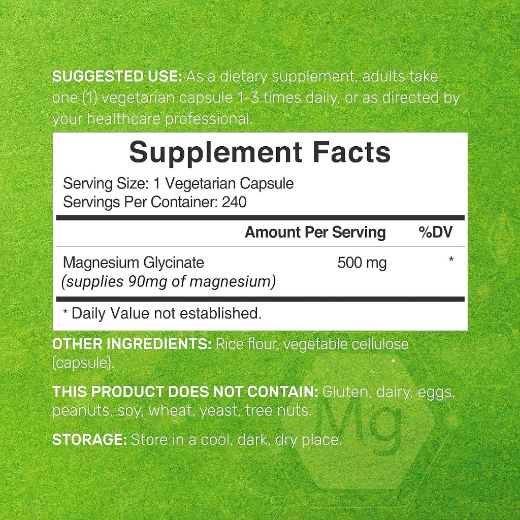 Deal Supplement Magnesium Glycinate 500mg 240 Veggie Capsules Eagleshine 500 Mg
