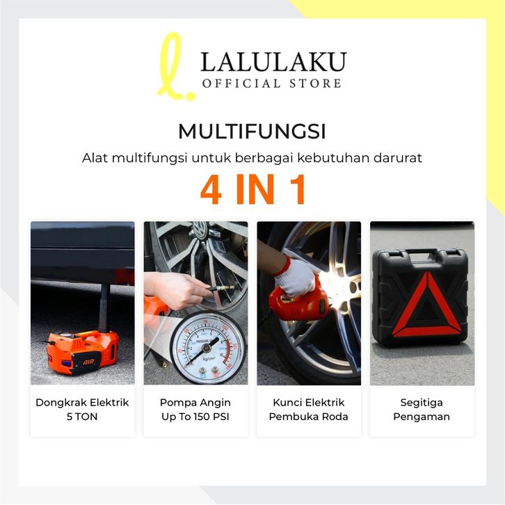 DONGKRAK ELEKTRIK / ELECTRIC CAR JACK 5 TON / DONGKRAK MOBIL KOMPLIT SET 4 IN 1 ORIGINAL READY STOCK