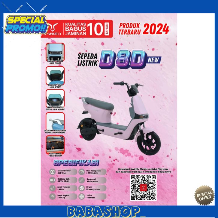 Sepeda Listrik Dewasa Murah UWINFLY D8D 450 Watt Electric E Bike Dragon fly garansi Resmi U WIN