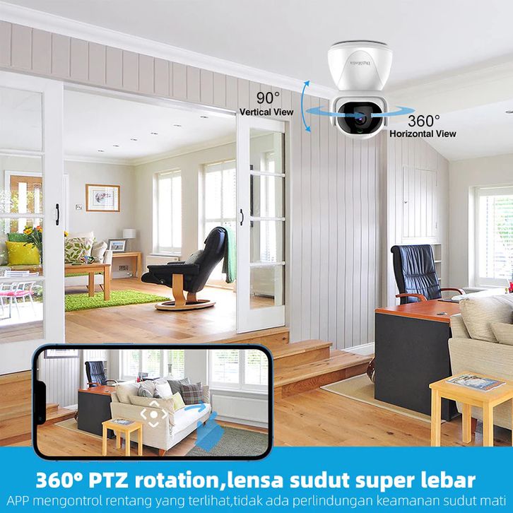 Kamera CCTV wifi 4MP Indoor V380 pro PTZ 360° Jarak Jauh Security camera Pelacakan otomatis