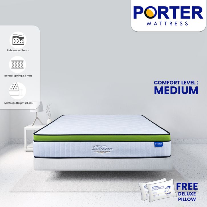 Kasur Springbed PORTER Dove Premium – Kasur Nyaman Anti Pegal Awet untuk Tidur Berkualitas Single Double Queen King