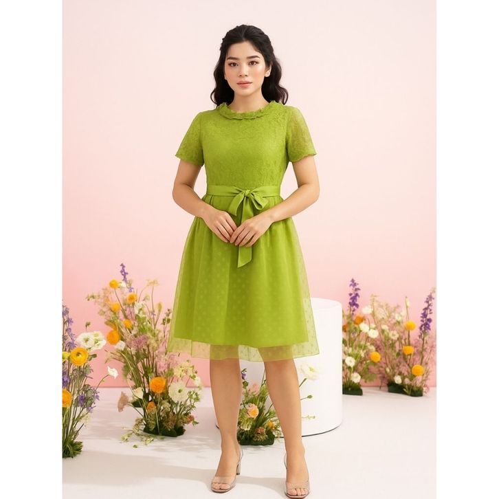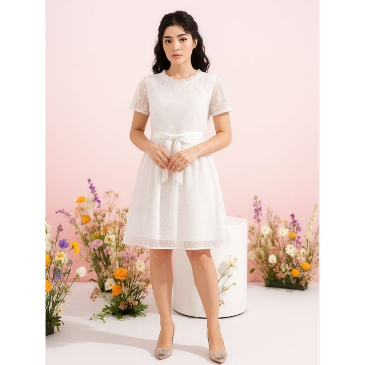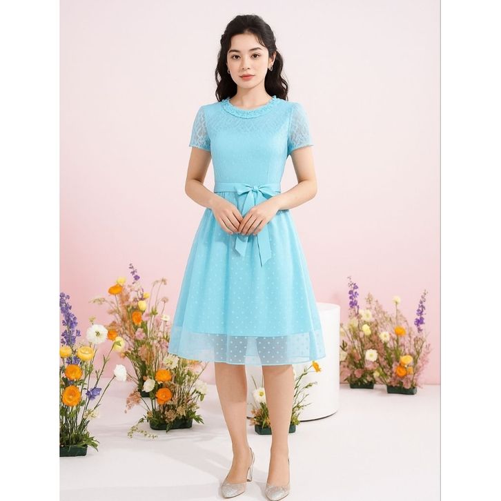 DRESS WANITA BRUKAT NATAL ALICIA MINI DRESS BROKAT TILE DOT DRESS FASHION ALA KOREA GAUN MEWAH ELEGANT REMAJA