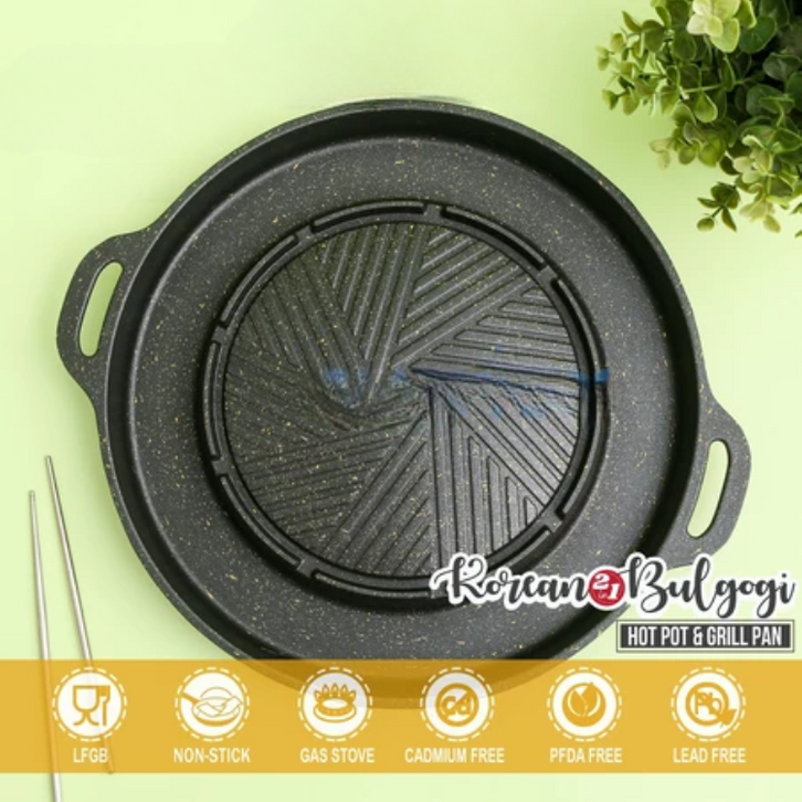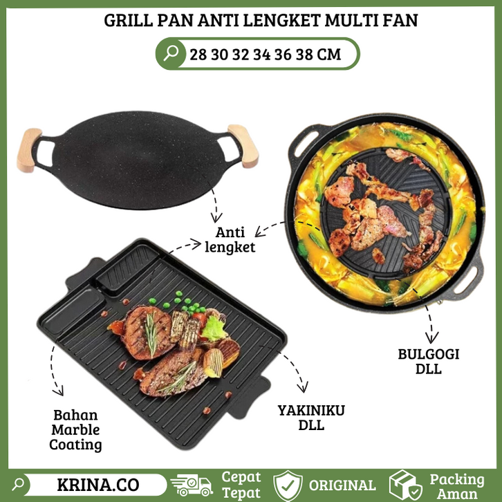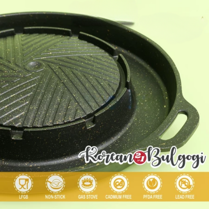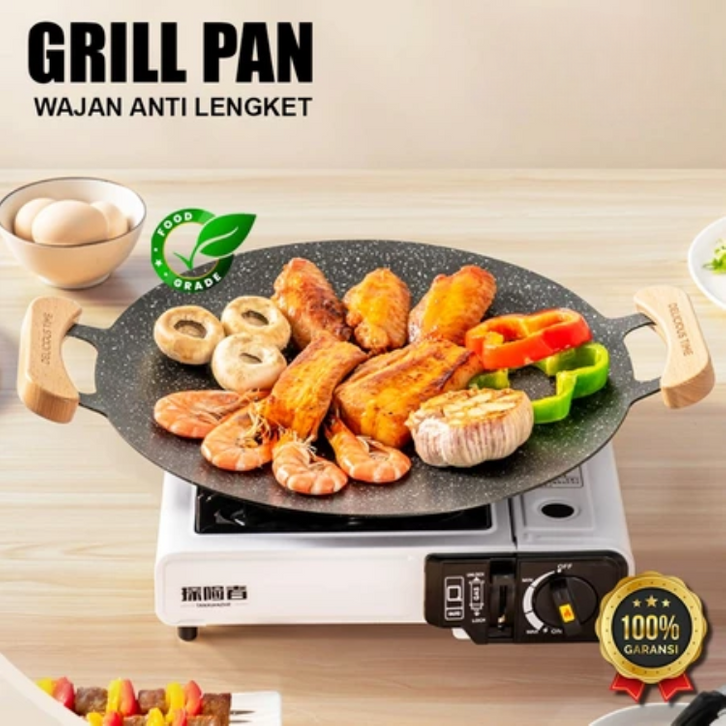 GRILL PAN ANTI LENGKET ALAT PANGGANGAN BBQ YAKINIKU MARBLE COATING DAGING BAKARAN MULTI SERBAGUNA BULGOGI KOREA TERLARIS