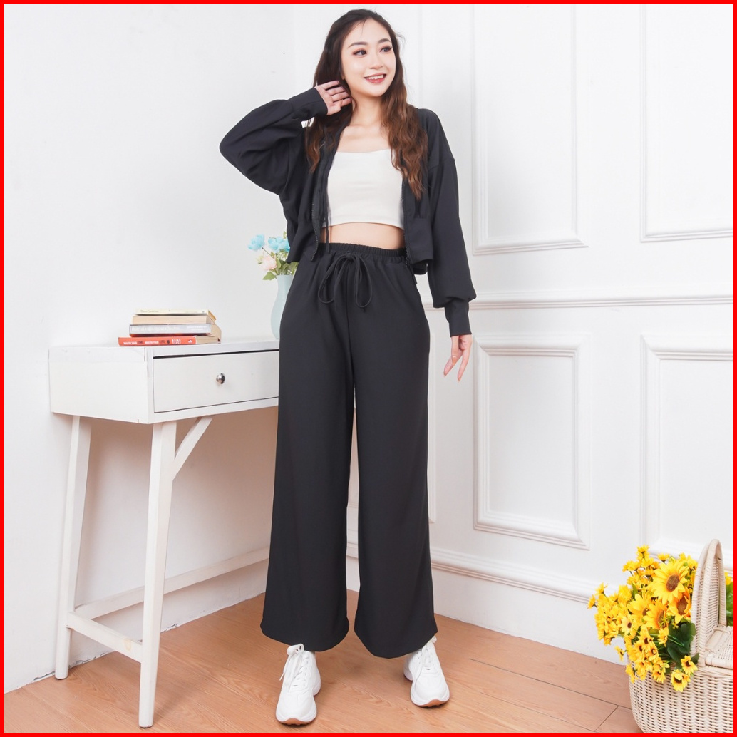 Il - One Set Hoodie Tina Wanita Knit Premium Setelan Jaket Hoodie Dan Kulot Wanita