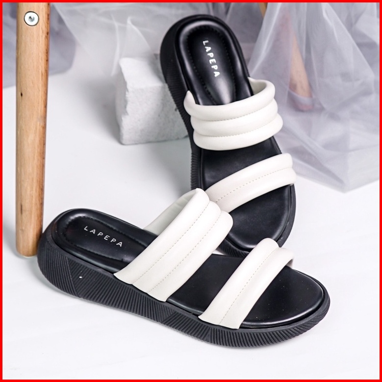 Lapepa Yuk - Sandal Wanita Wedges Zoya Sendal Cewek Platform Model Ban Dua Unik Lucu Kondangan Hak Tinggi 3cm Size 36 37