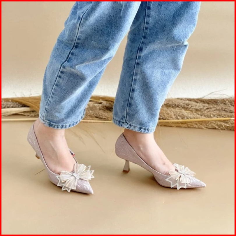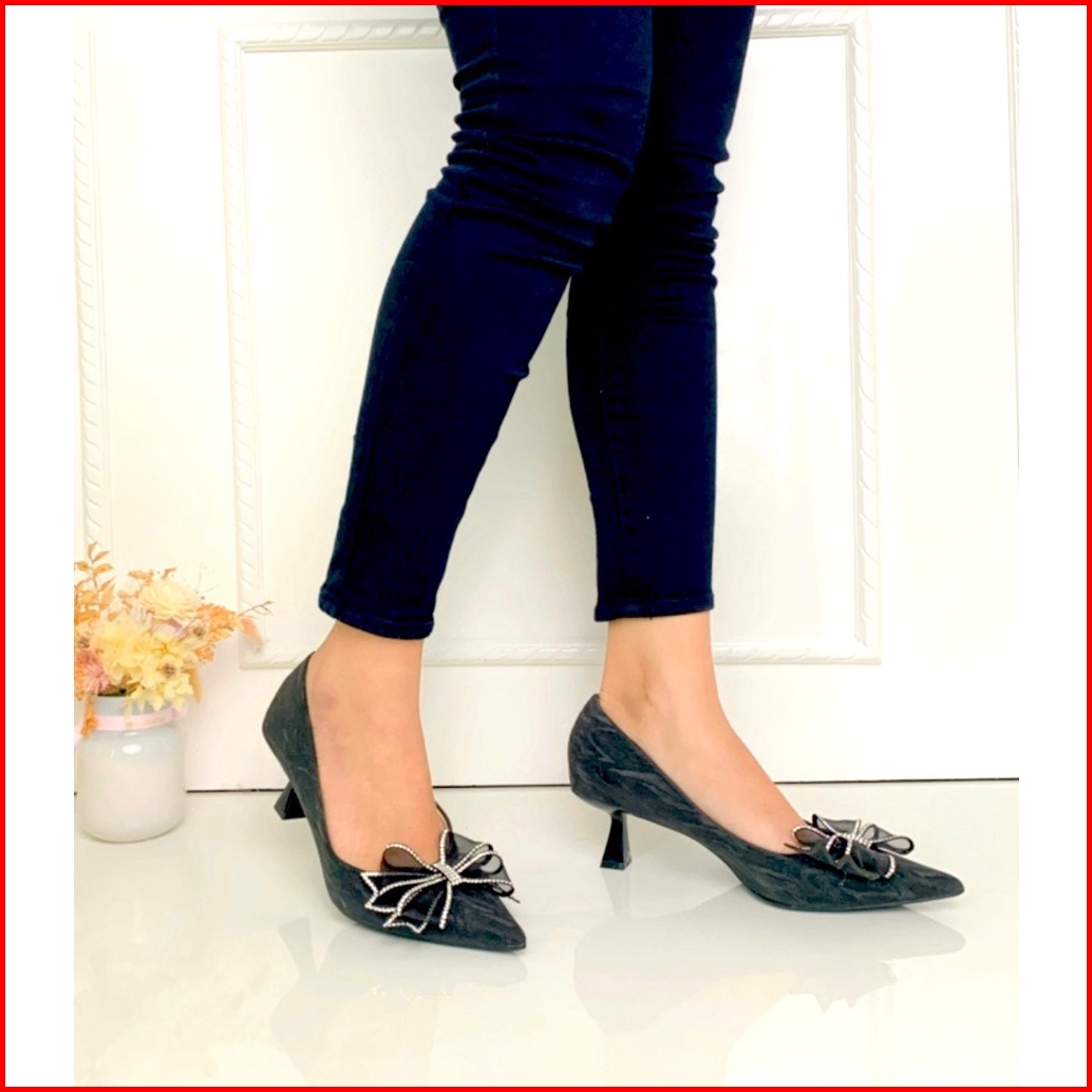 Sepatu Wanita High Heels Zs494 Elegan Bow 4cm