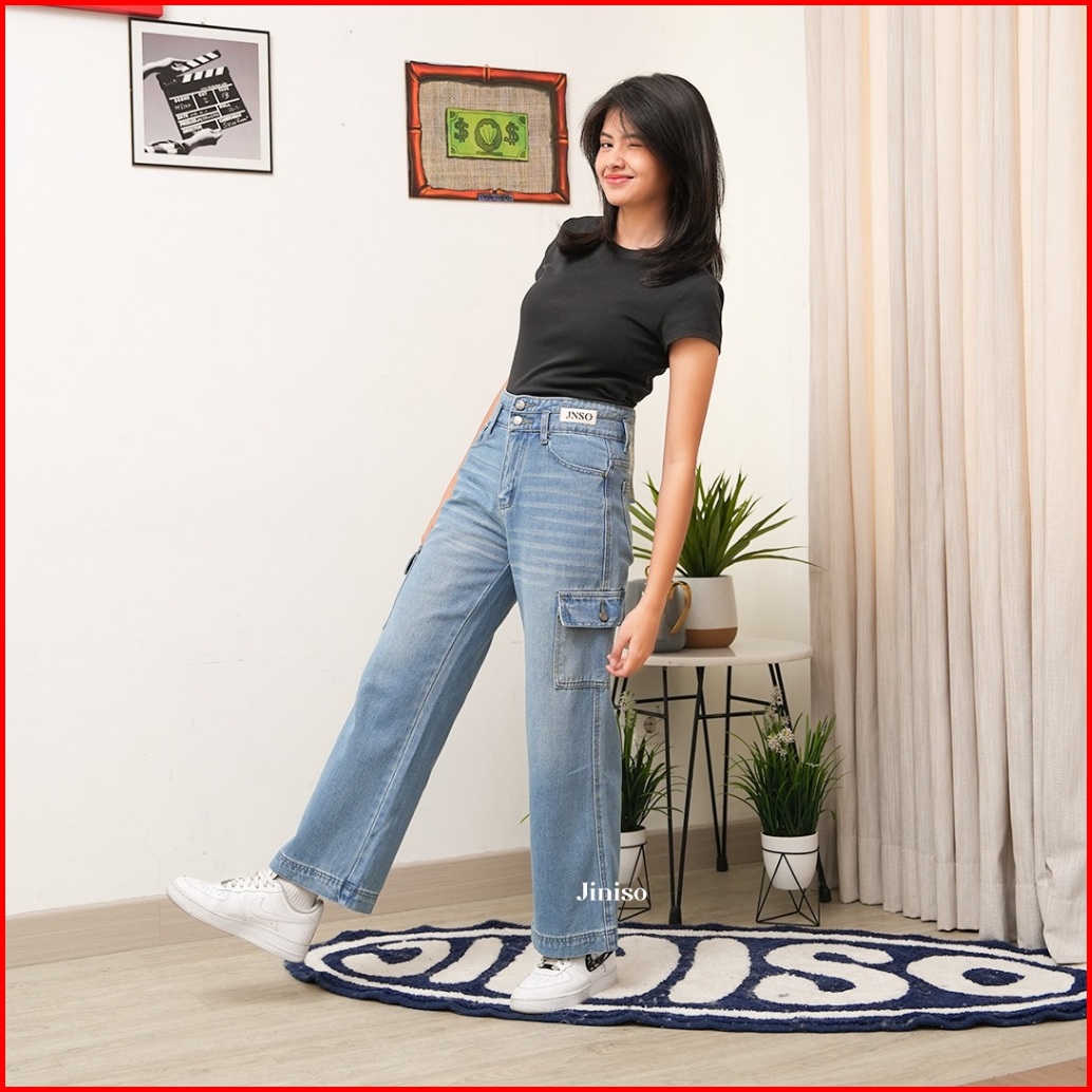 Jiniso - Highwaist Cargo Loose Jeans 461 Fearless