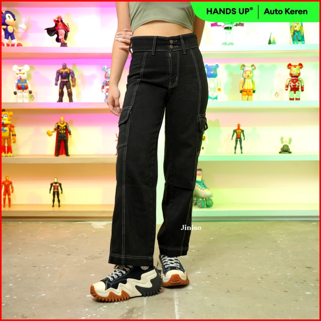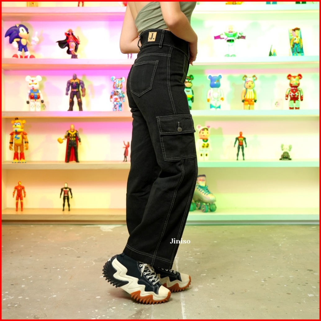 Jiniso - Highwaist Cargo Loose Jeans 404 Hands Up