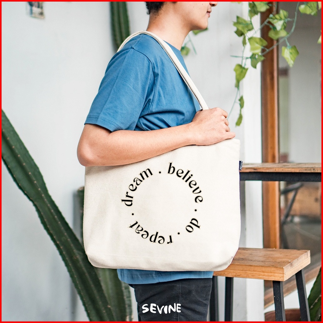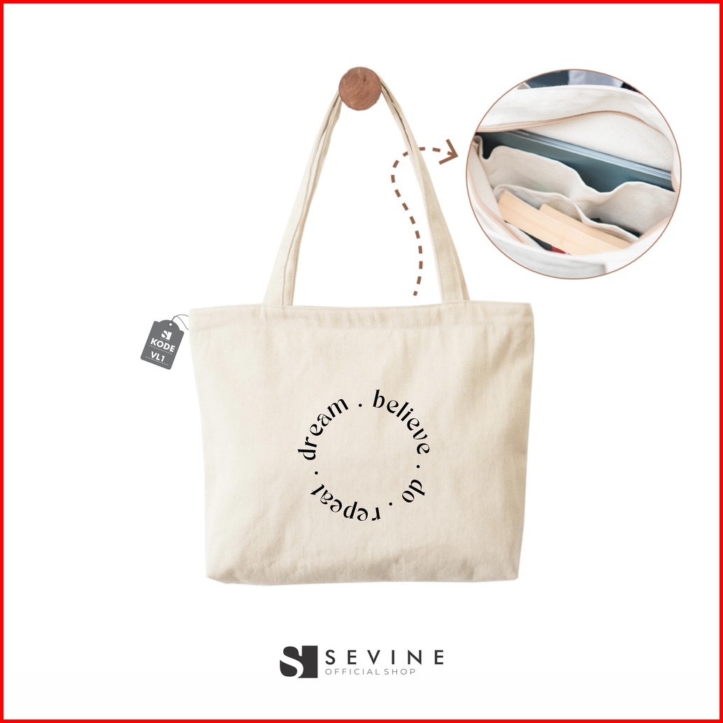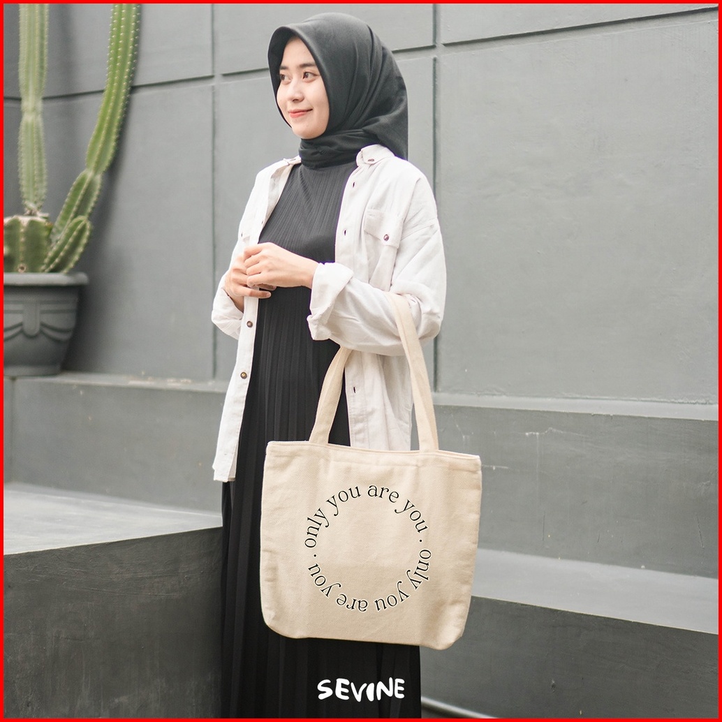 Sevine Tote Bag Kanvas Emily Resleting Kantong Laptop Tas Wanita Kuliah Sekolah Fashion Totebag Kerja Quotes Self Affirm