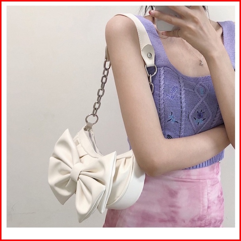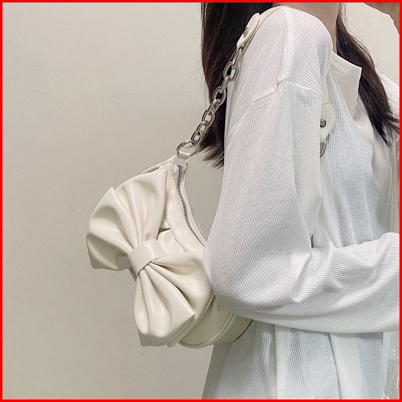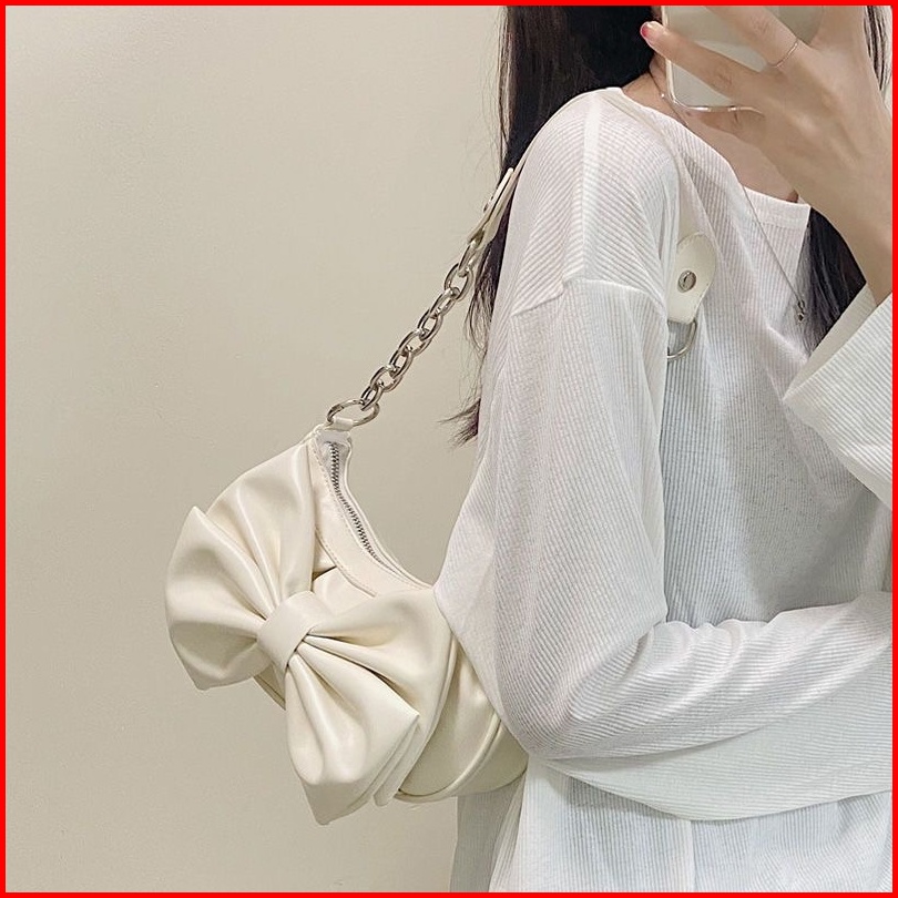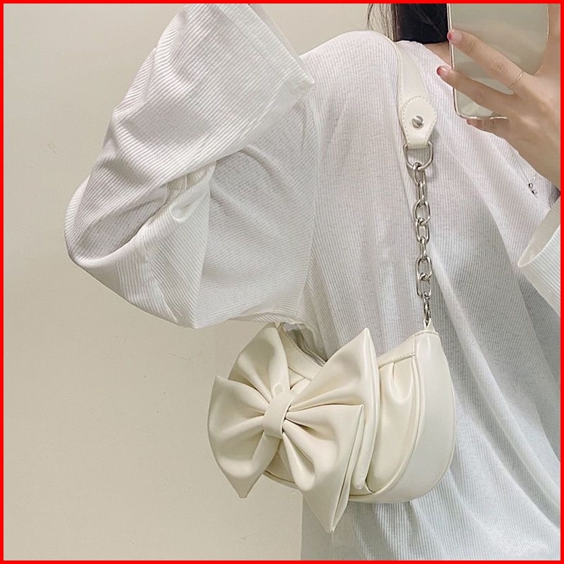 Tas Messenger Wanita Baru Tas Busur Niche Asli Tas Ketiak Cloud Lipat Tas Bahu