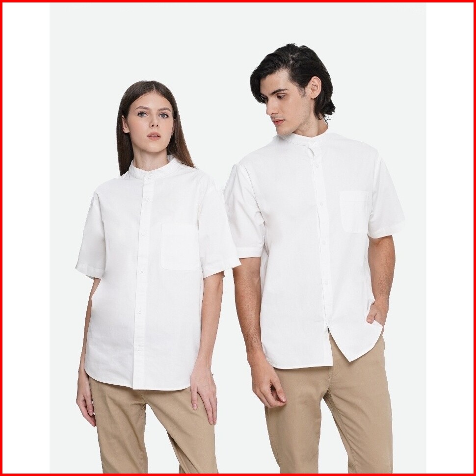 Erigo Shanghai Short Sleeve Rune White - Kemeja Lengan Pendek Unisex