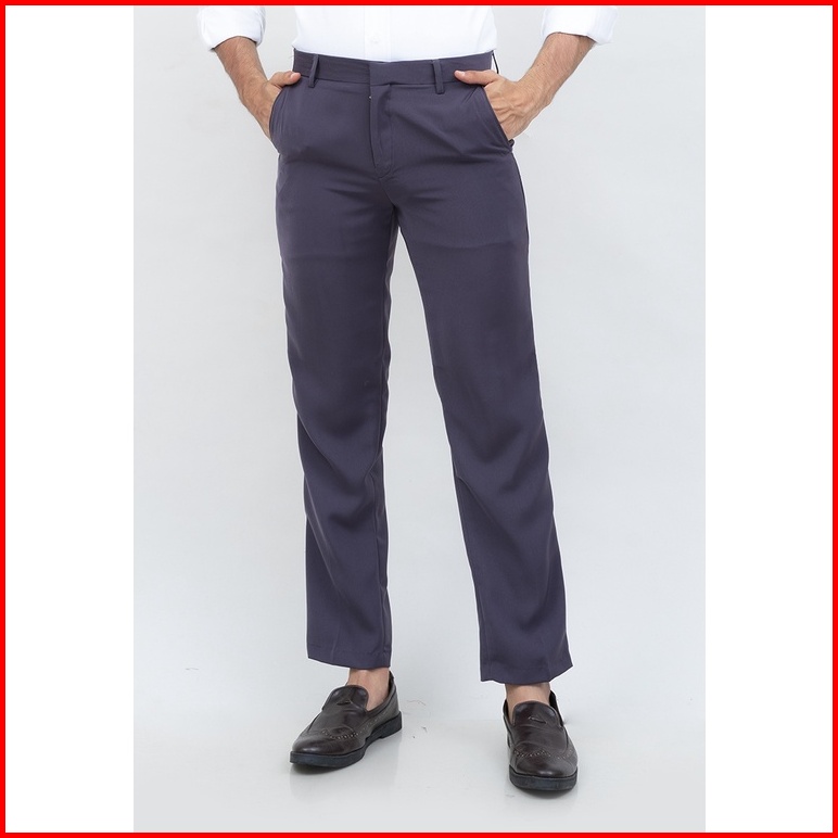 Celana Bahan Kerja Reguler Panjang Formal Lurus Bukan Slim Fit Abuabu