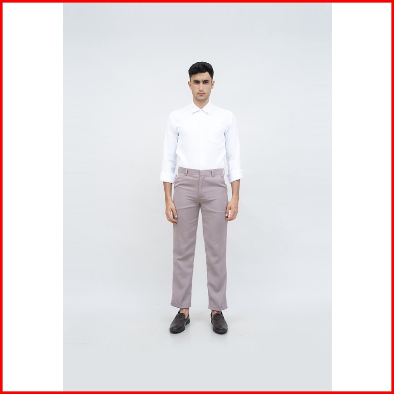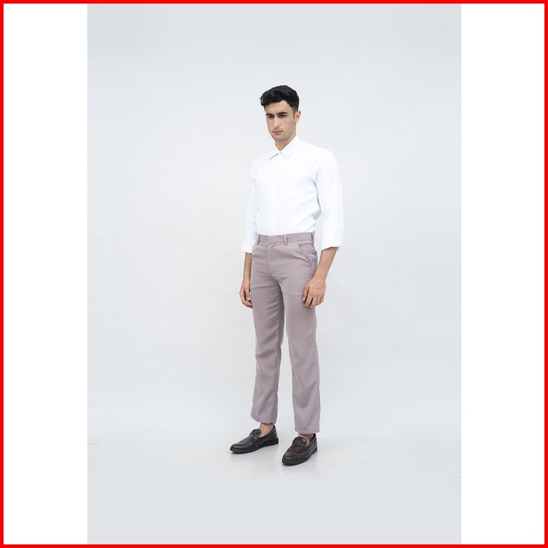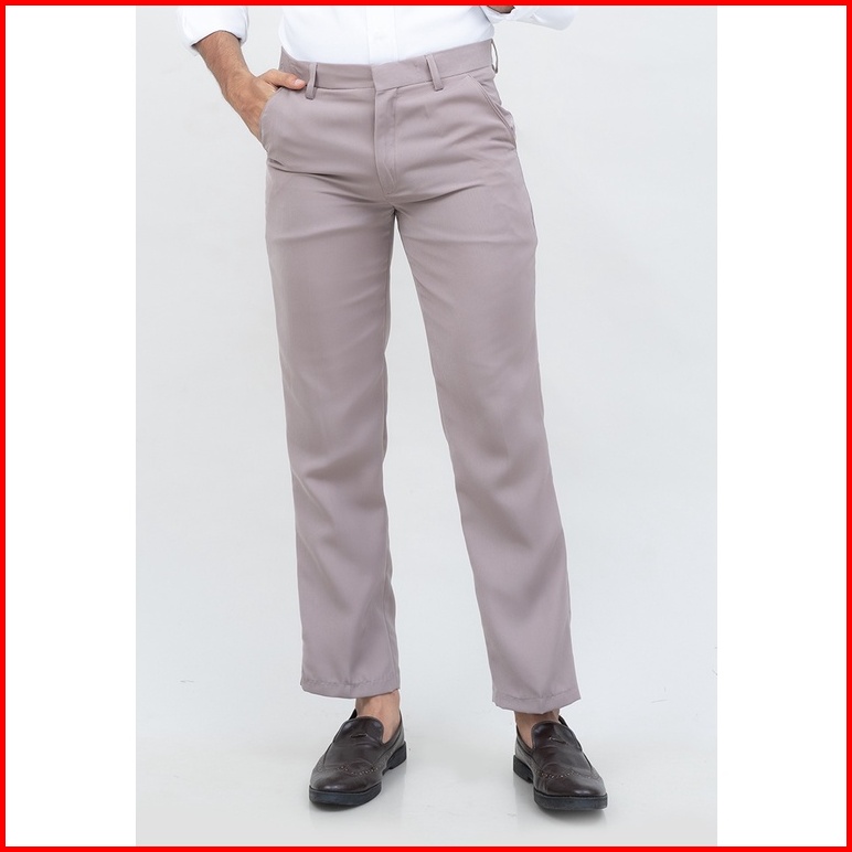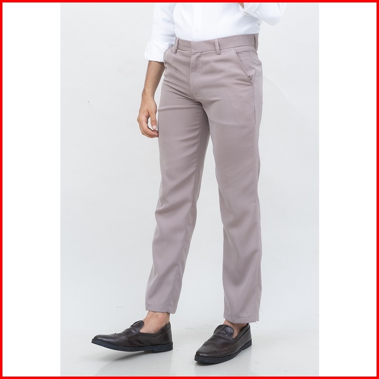 Celana Bahan Kerja Reguler Panjang Formal Lurus Bukan Slim Fit Krim