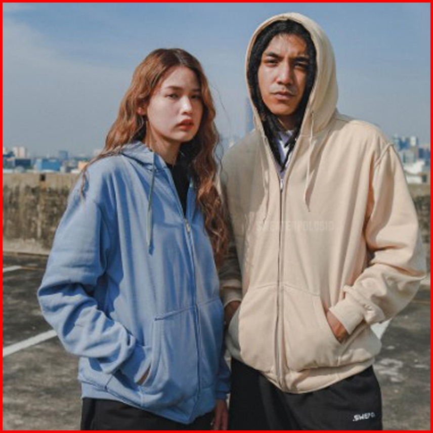 Sweater Hoodie Zipper Polos Pria Dan Wanita Flacee Tebal Size M L Xl Xxl