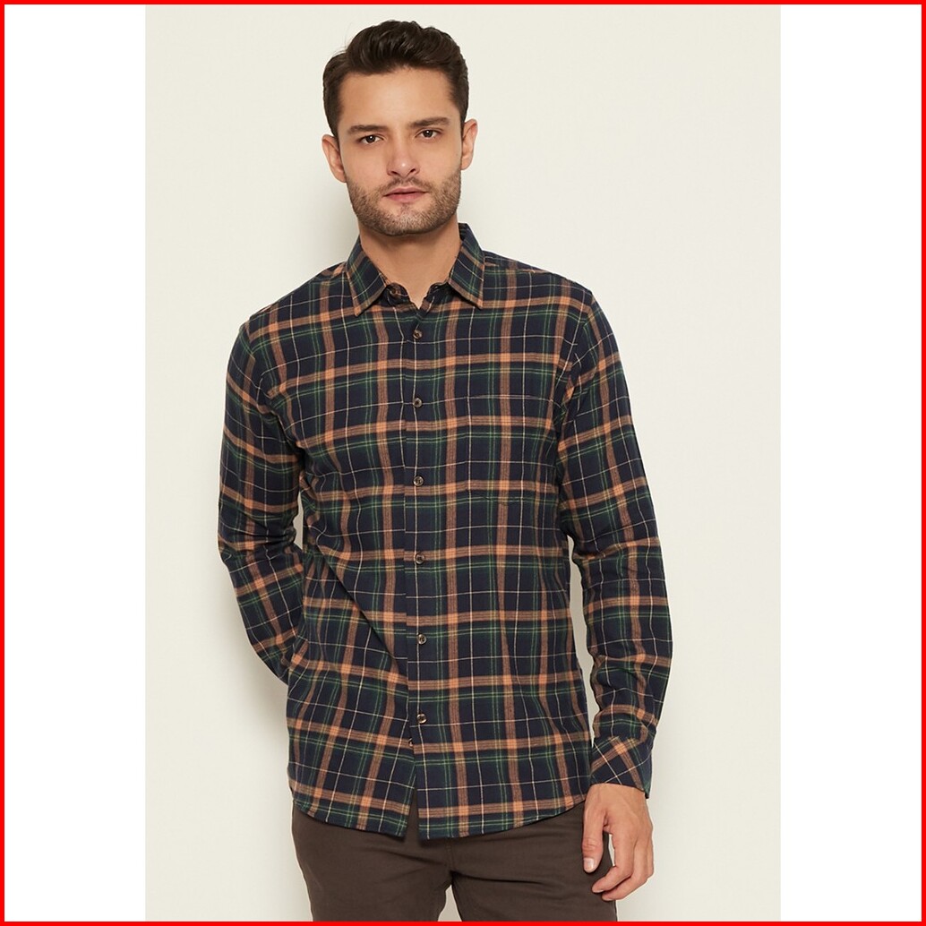 M231 Kemeja Pria Flannel Panjang Navy 1499