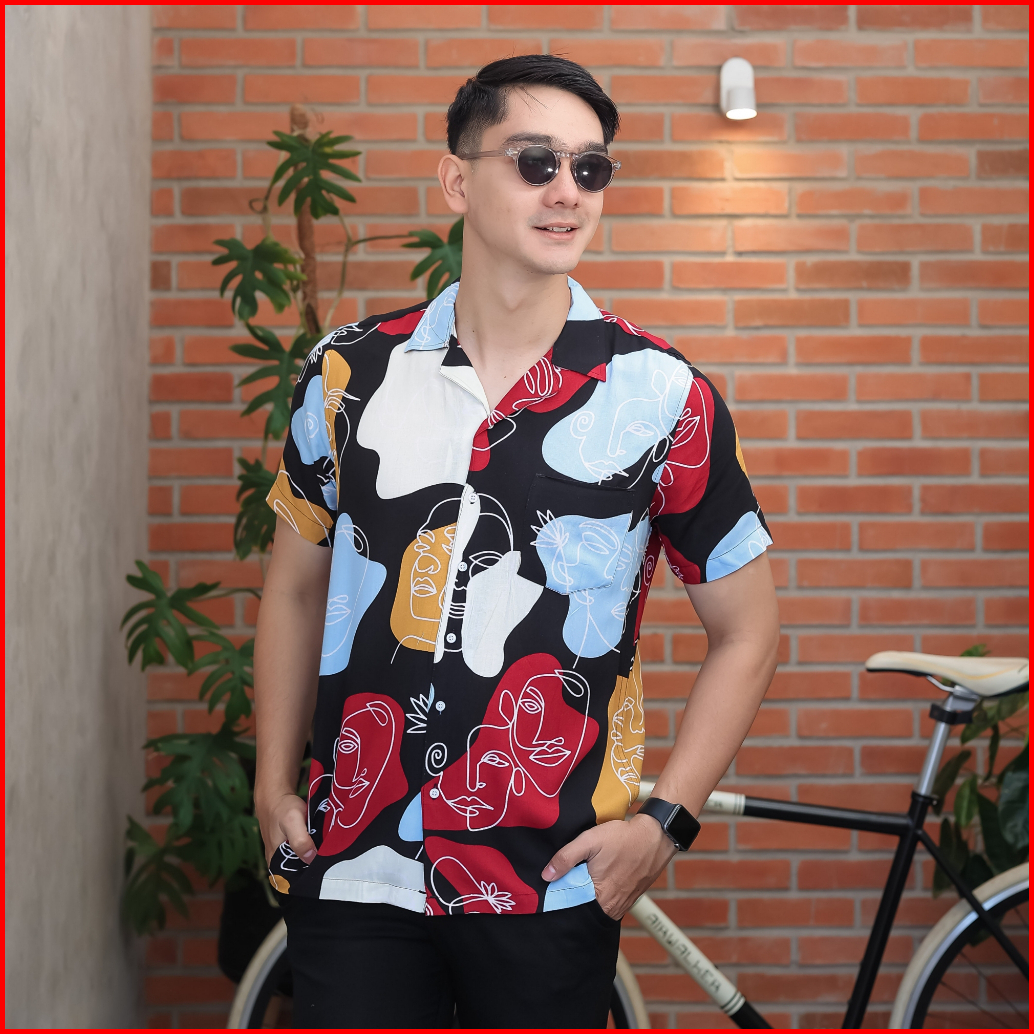 Sanvanina Kemeja Hawaii Pria Motif Kemeja Hawai Unisex Bahan Rayon Lengan Pendek Leka 2041