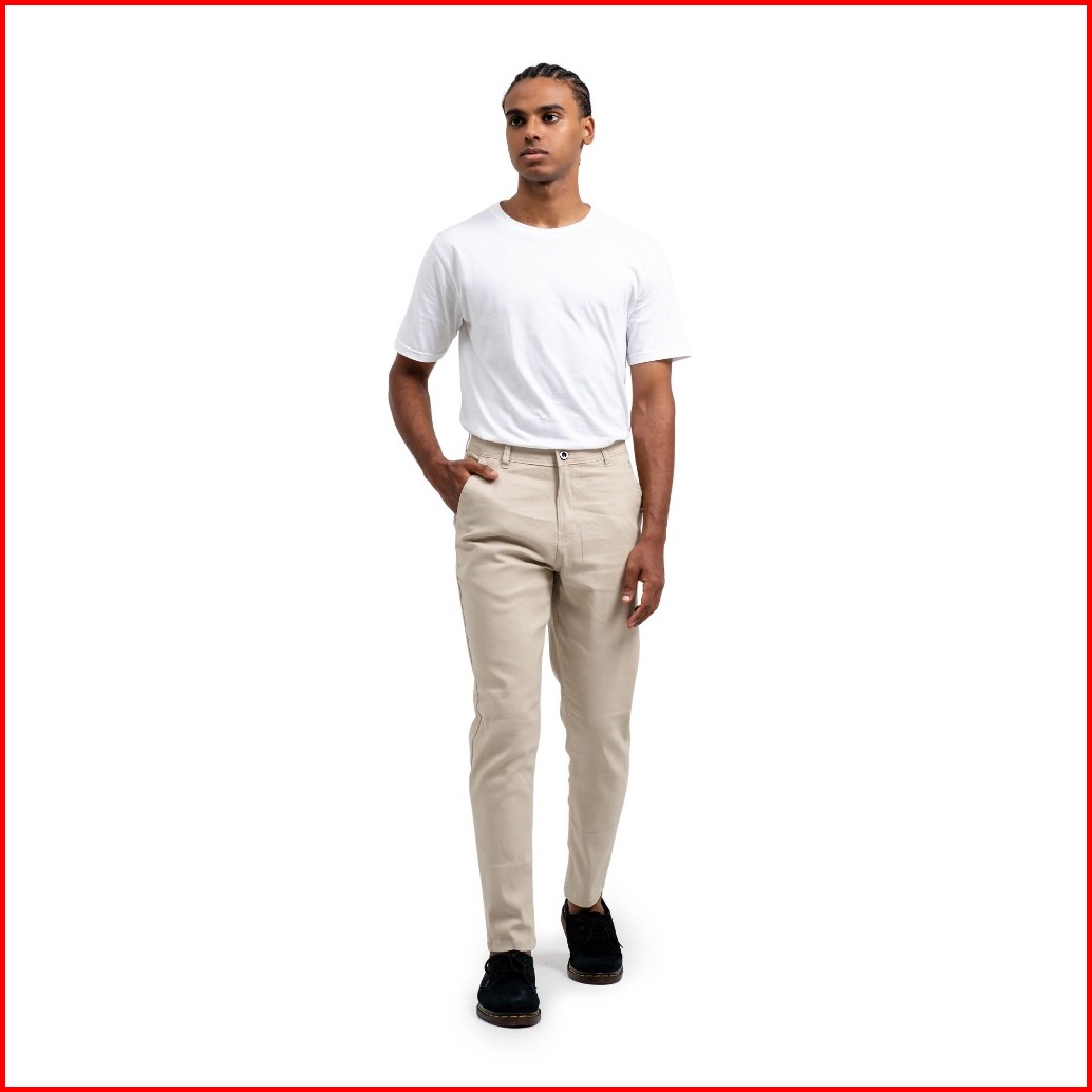 Ribsgold Celana Chino Panjang Pria Long Chinos Pants Cino Strech - Cream Khaki