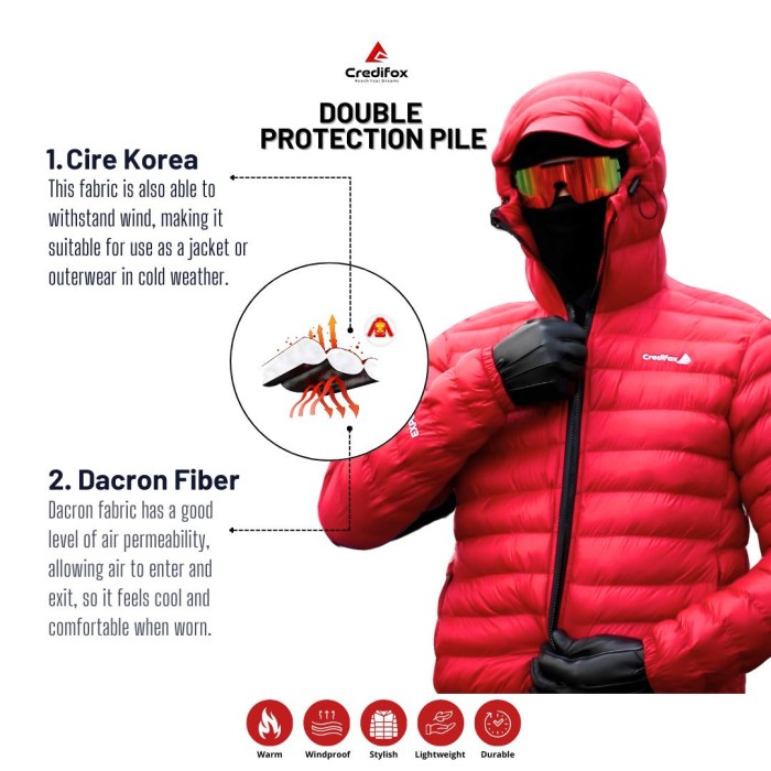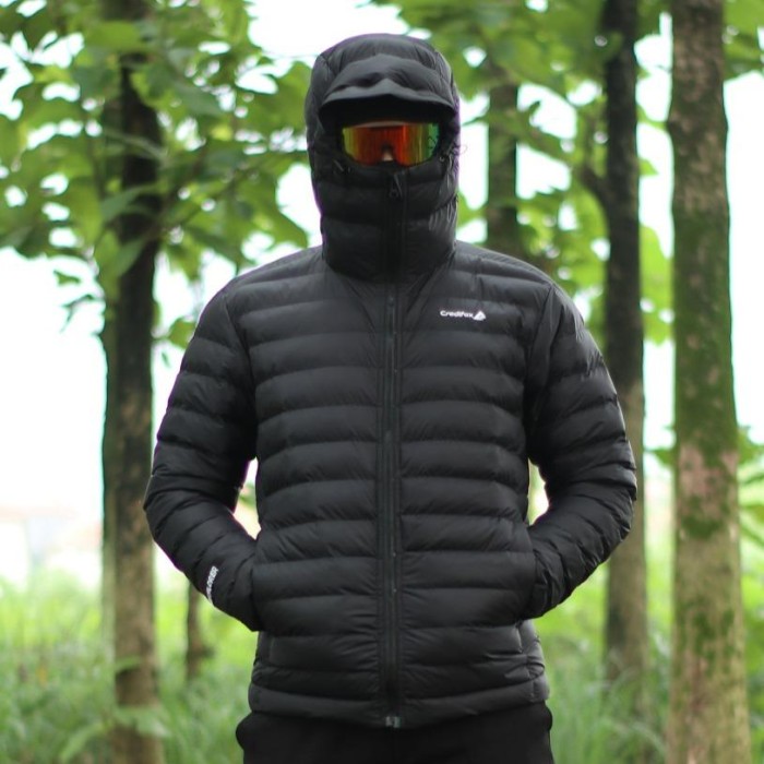 CREDIFOX JAKET GUNUNG GORPCORE PUFFER EXPLORER - JACKET GELEMBUNG BAHAN CIRE - HITAM, XL (65KG-80KG)