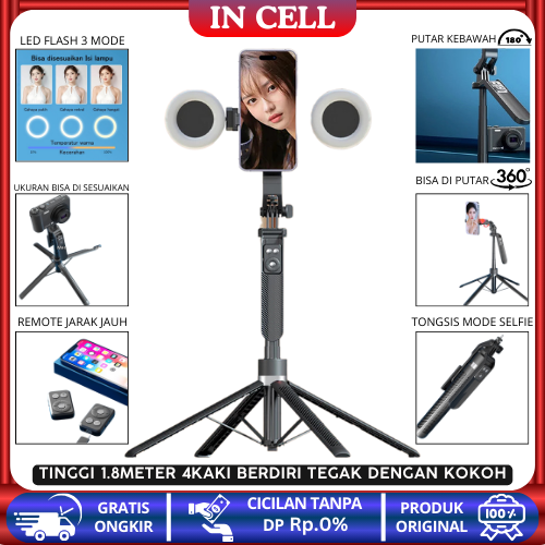 [Mall]Tripod Tongsis Vlog handphone MultifungsiTongsis Tripod Bluetooth 4in1 Selfie Stick Remote Action Berkualitas Ori
