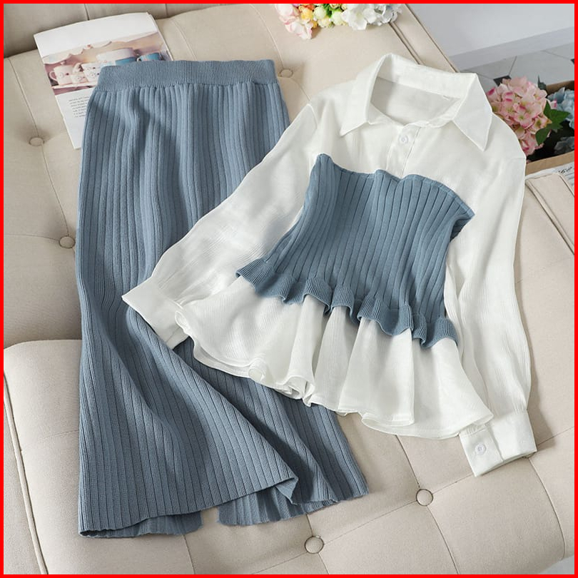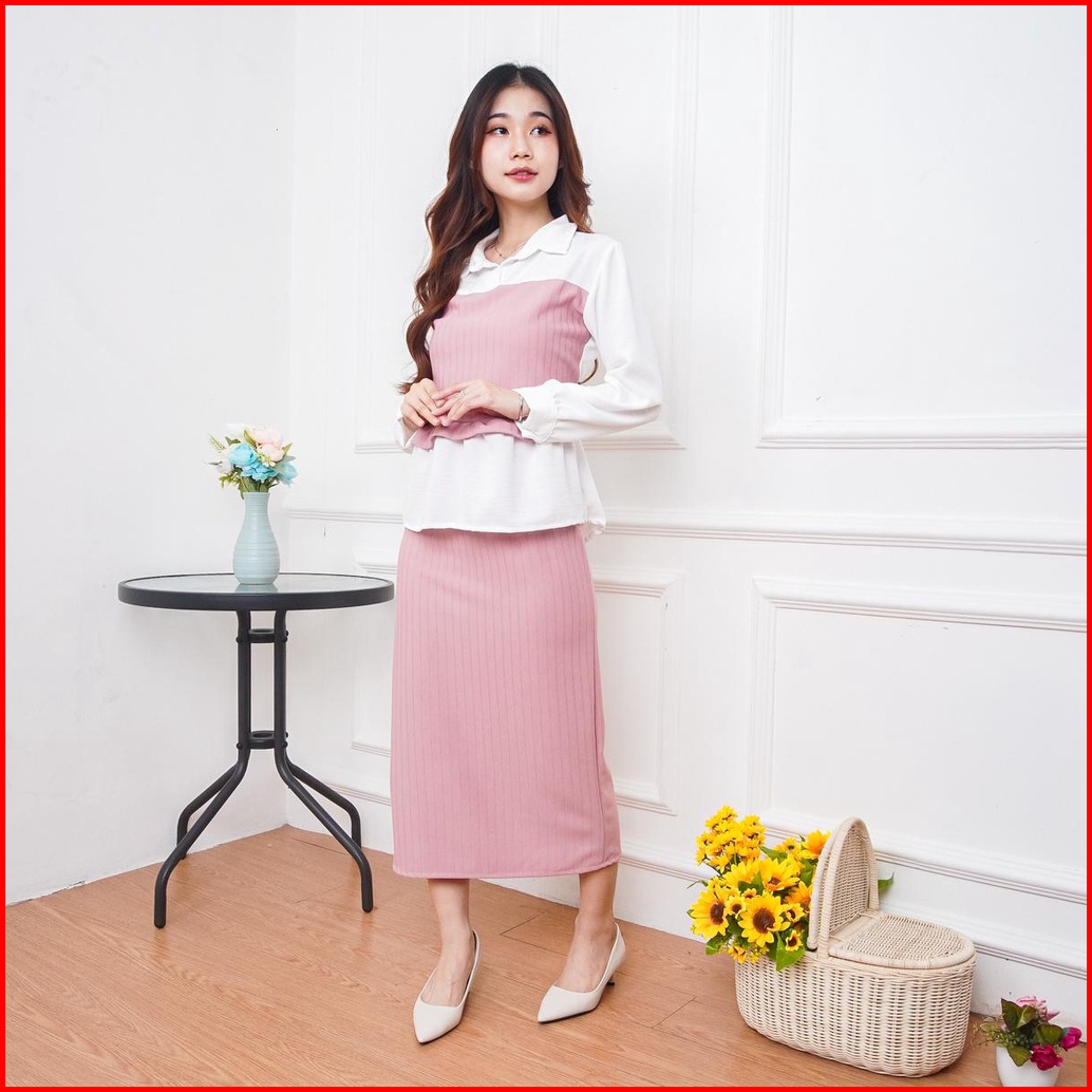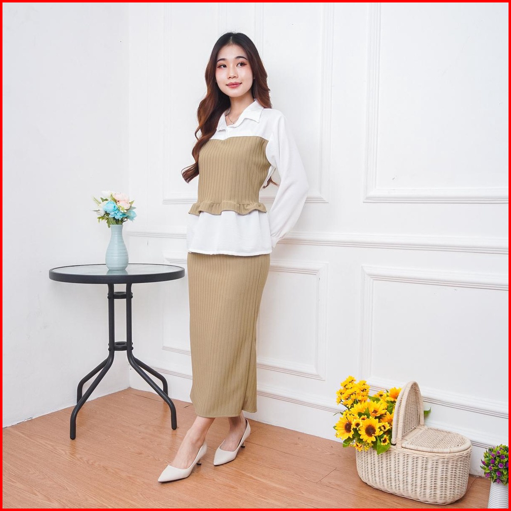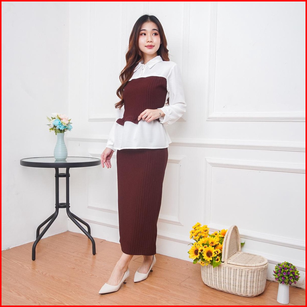 Il - Setelan Wanita Hornet Knit Premium Oneset Owen Blouse Dan Rok Span Panjang Korean Style