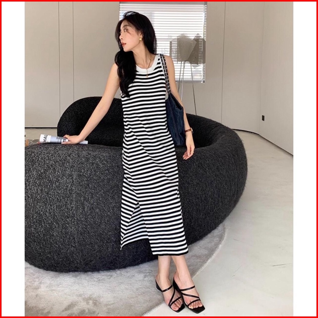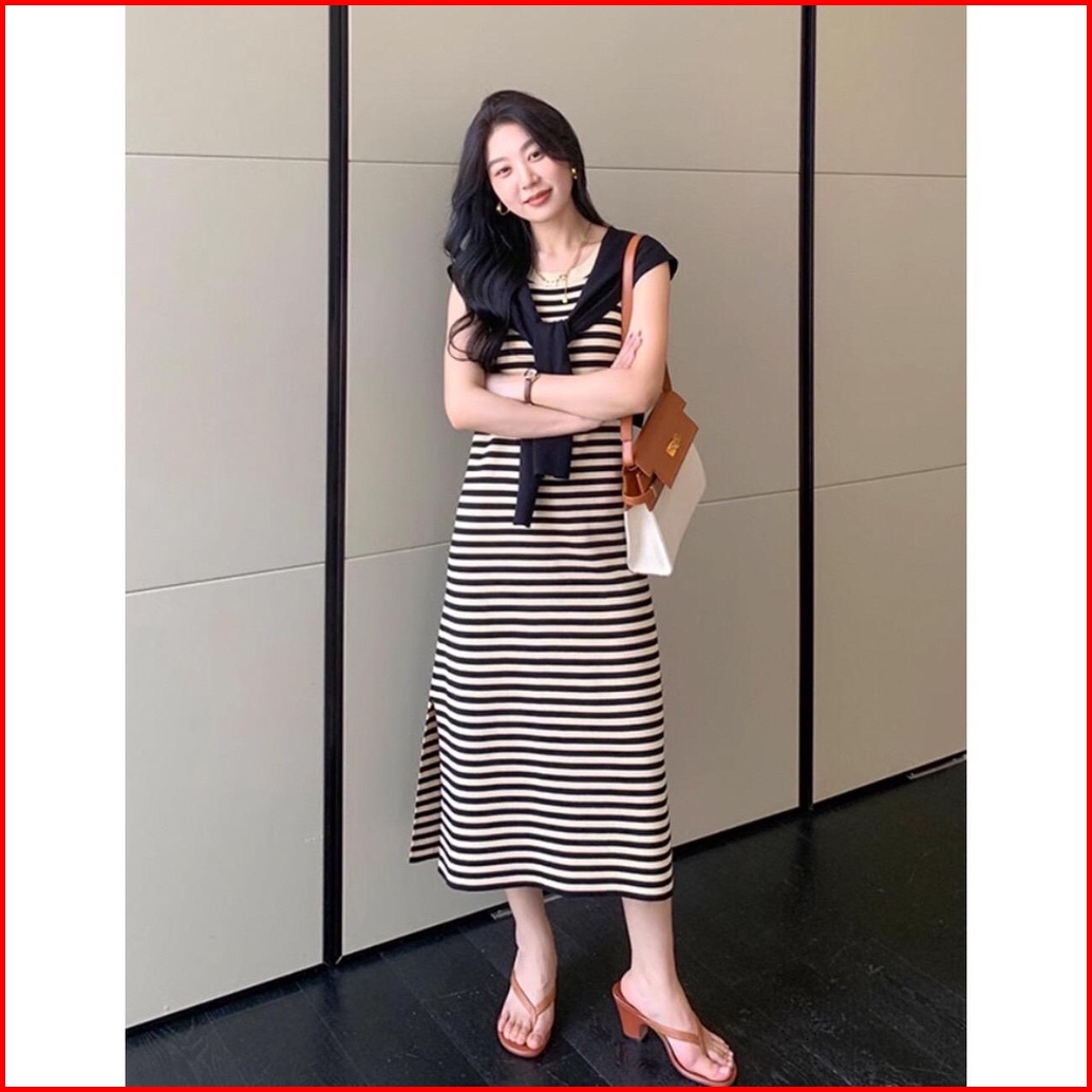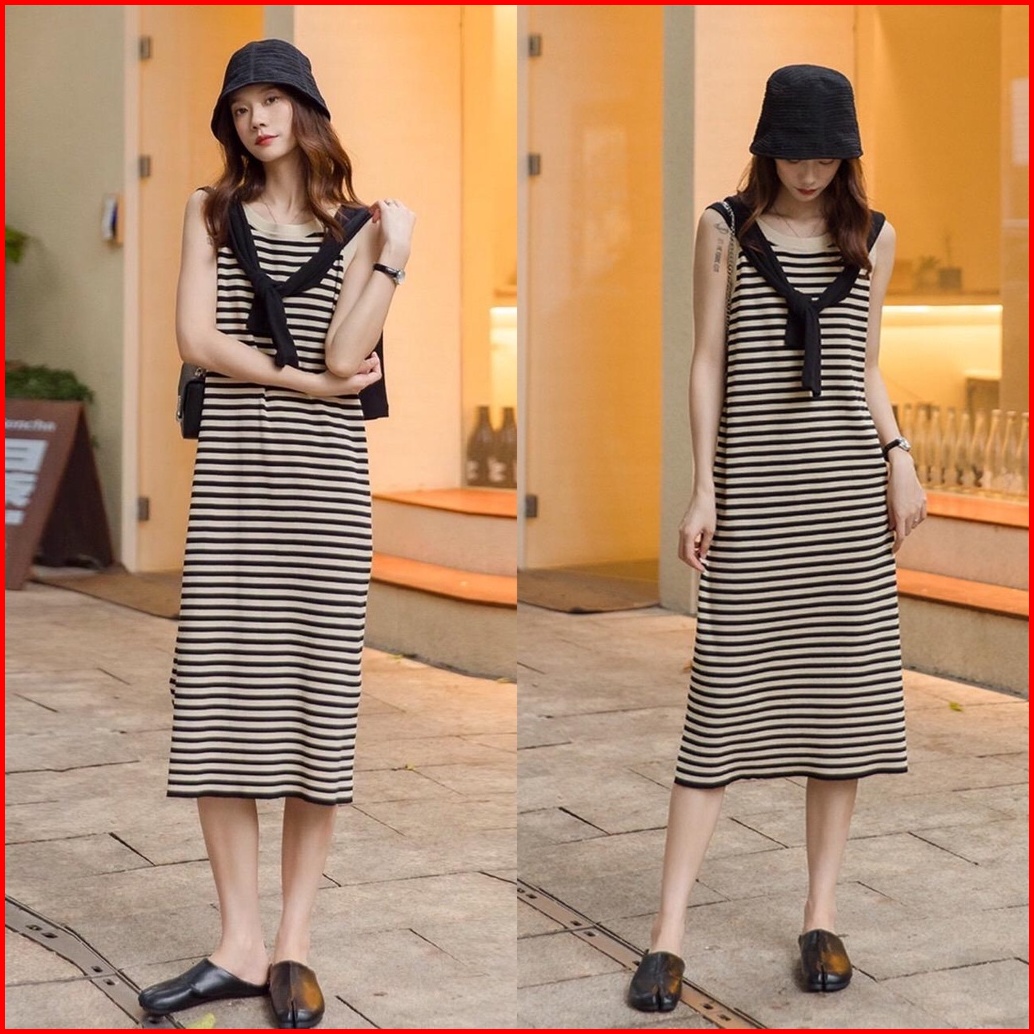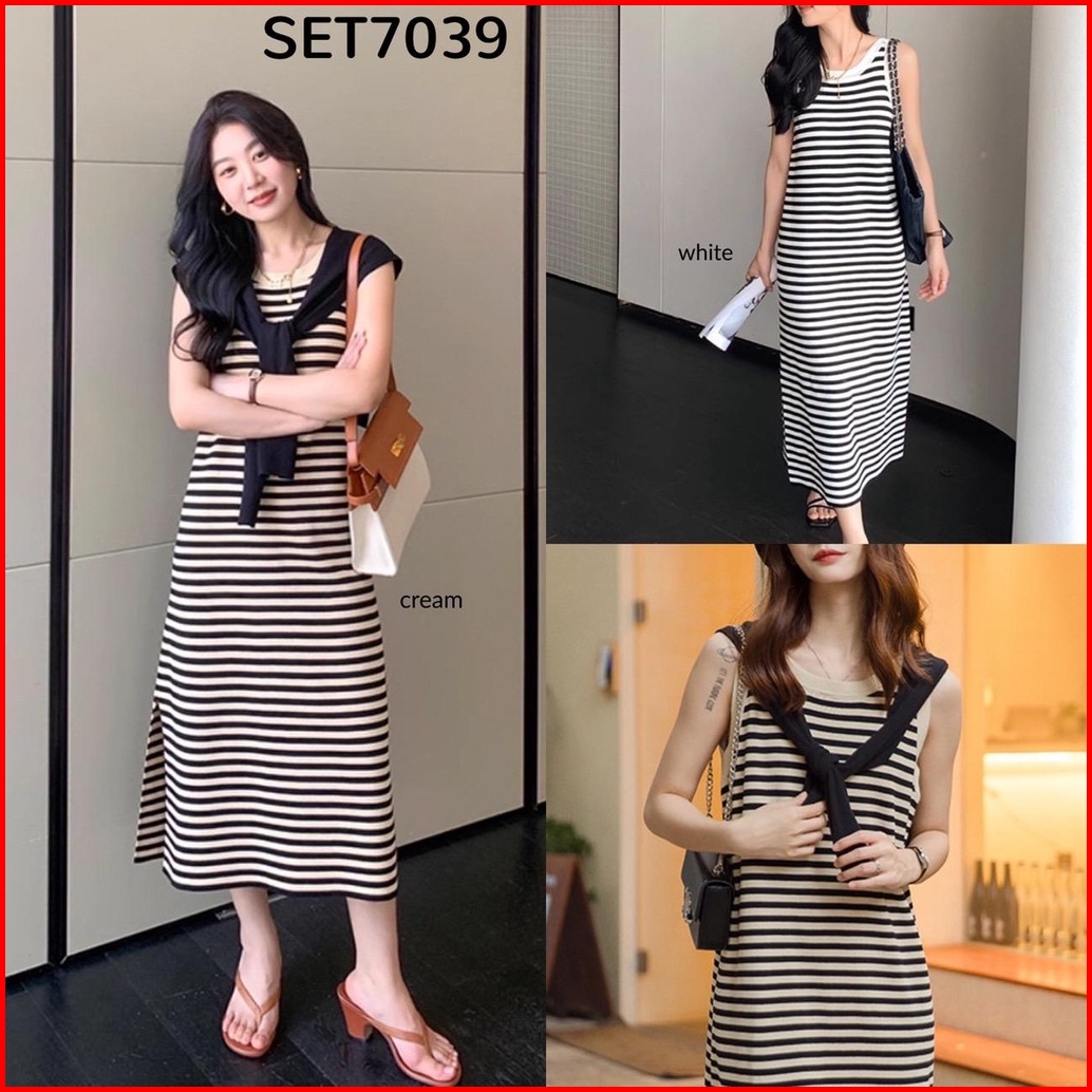 Fg Stripe Sleeveless Dress Set W Capelet Set7039