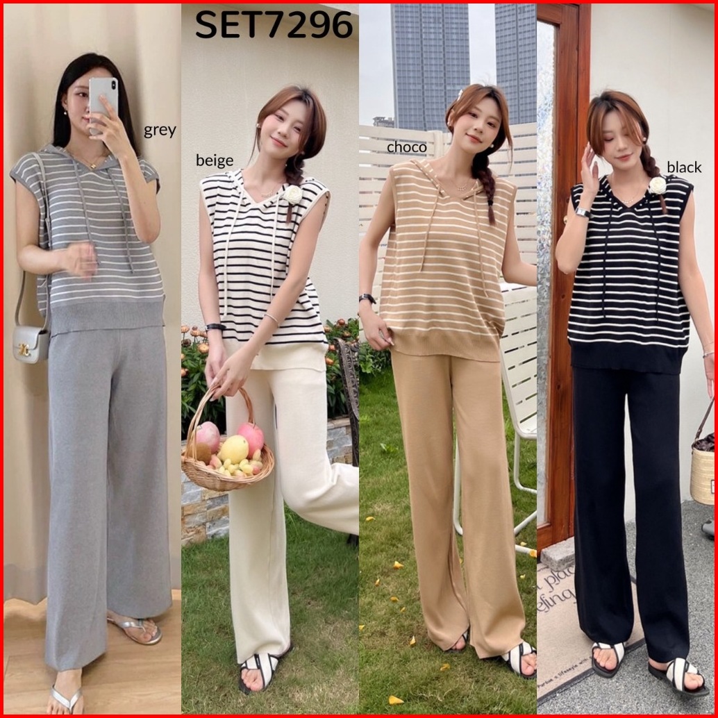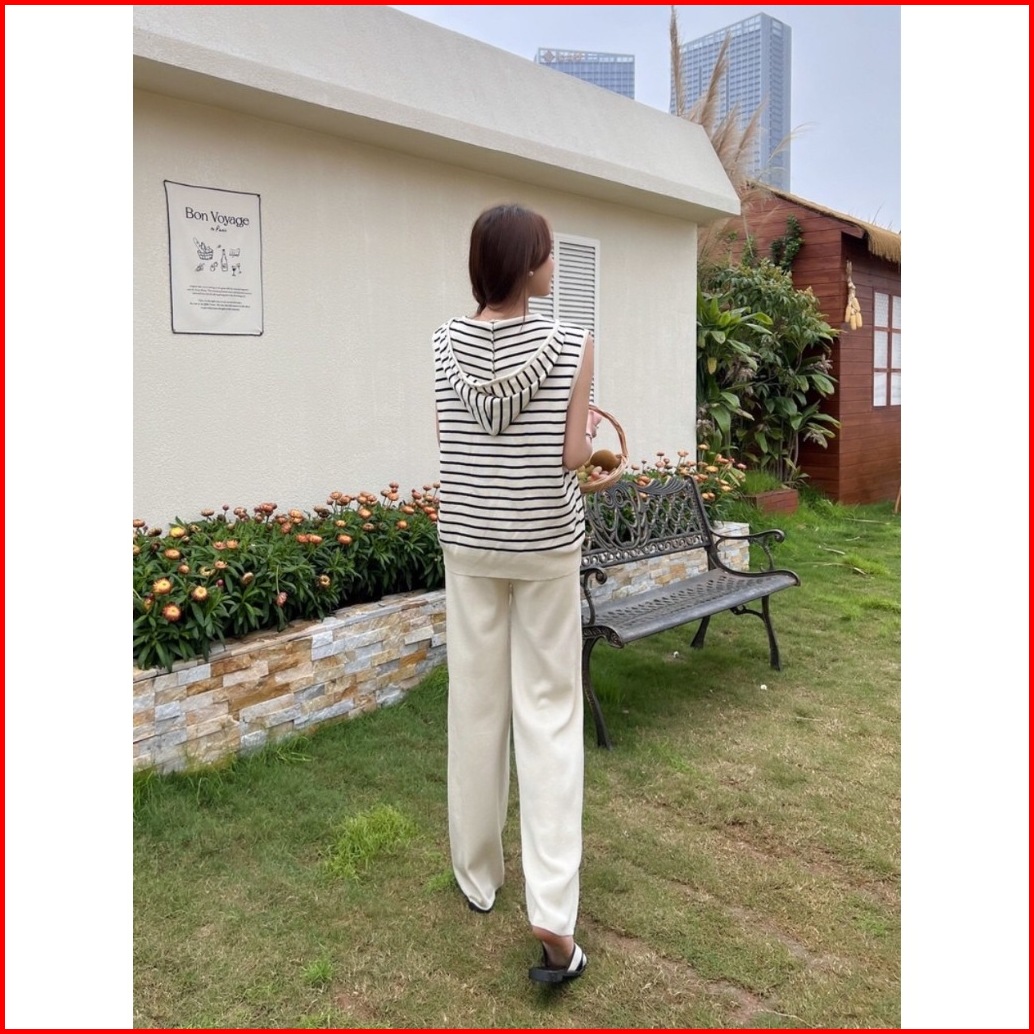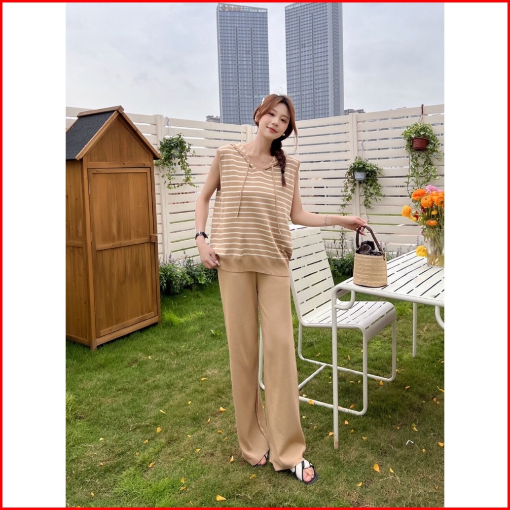 Fg Hoodie Stripe Knit Set Loose Top N Pants Set7296