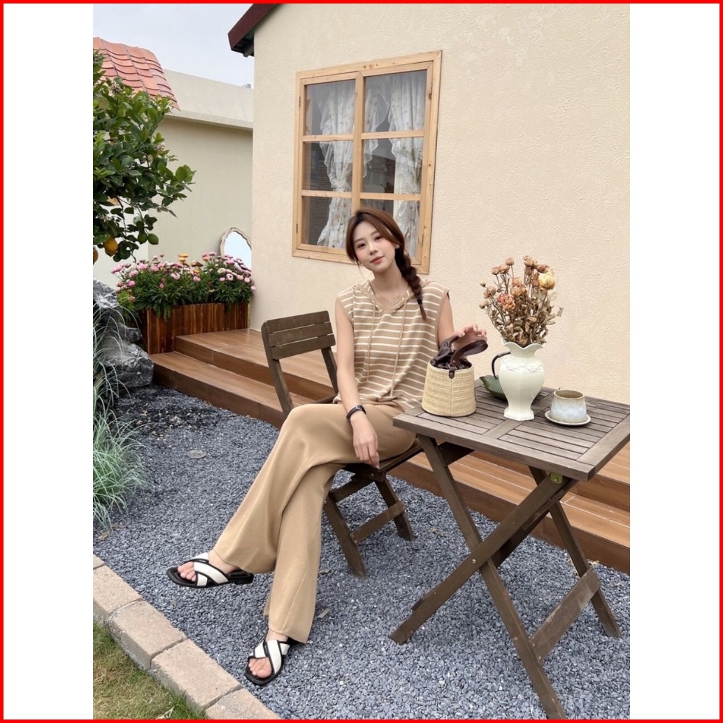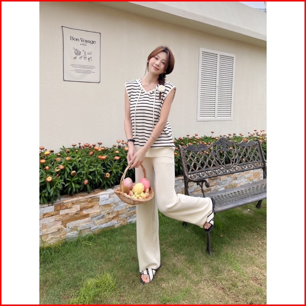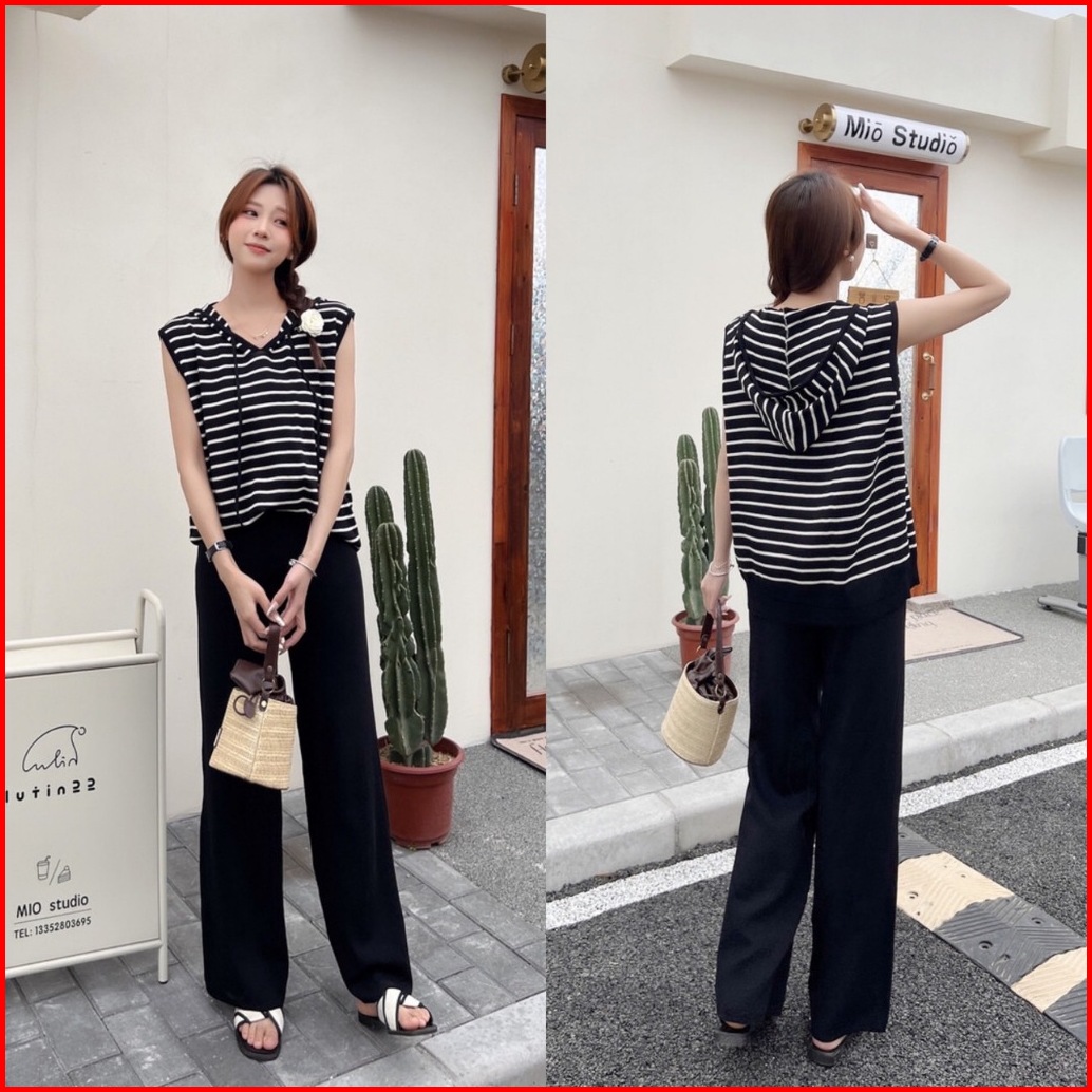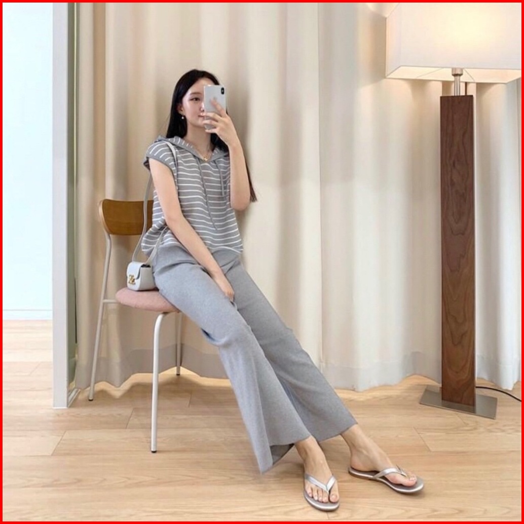 Fg Hoodie Stripe Knit Set Loose Top N Pants Set7296