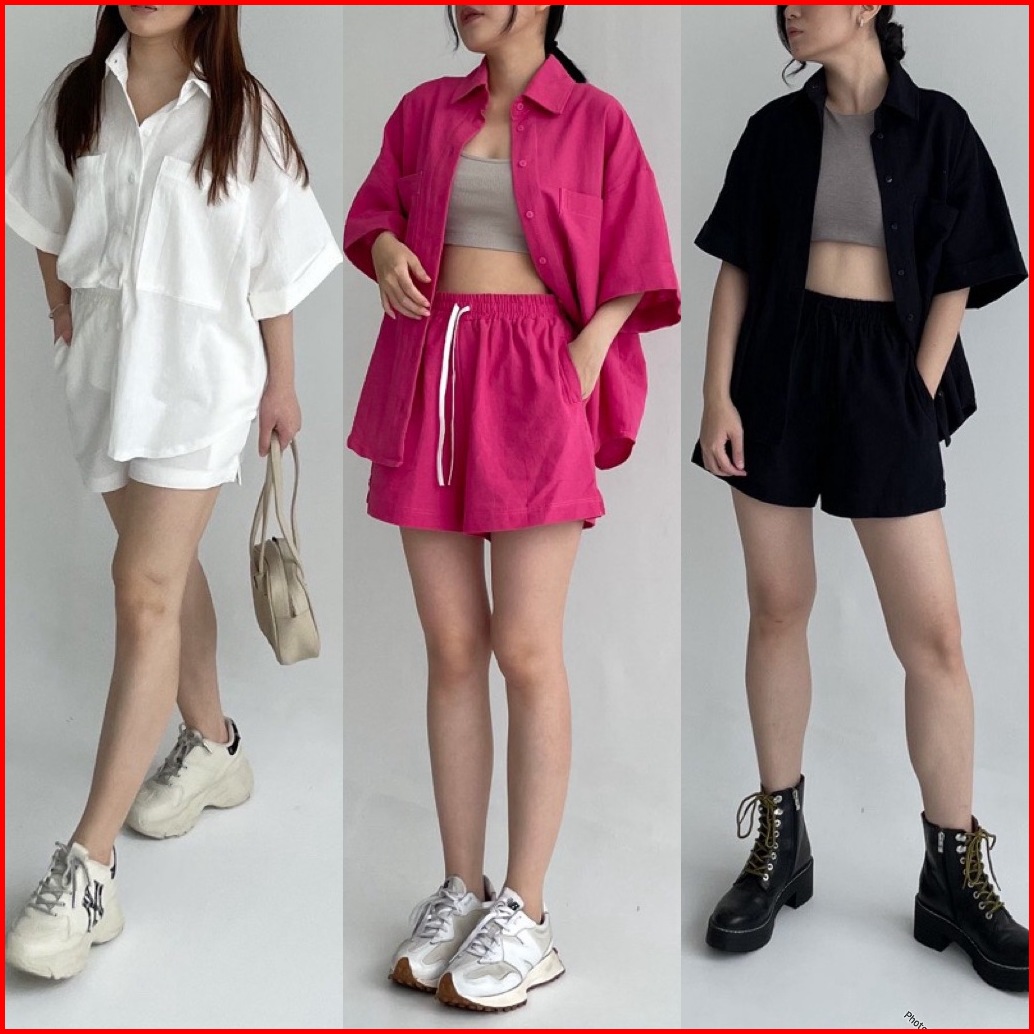 Marrie Linen Set - Vey Linen Set - Set Casual Wanita - Set Linen Premium Setelan Baju Dan Celana Pendek Wanita - Sunshin