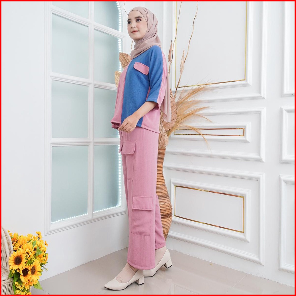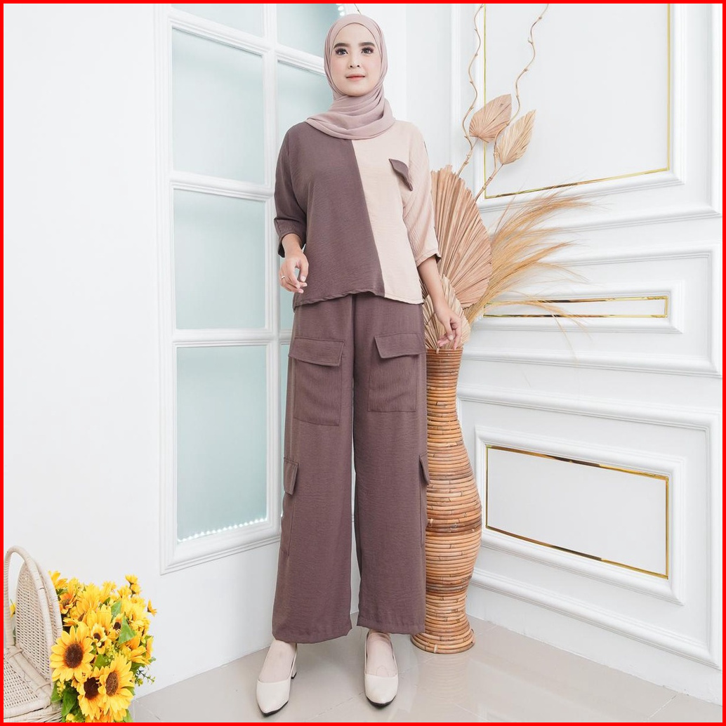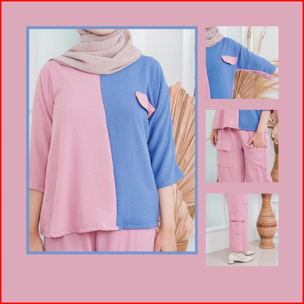Il - Setelan One Set Wanita Morena Cringkel Airflow Kombinasi 2 Warna