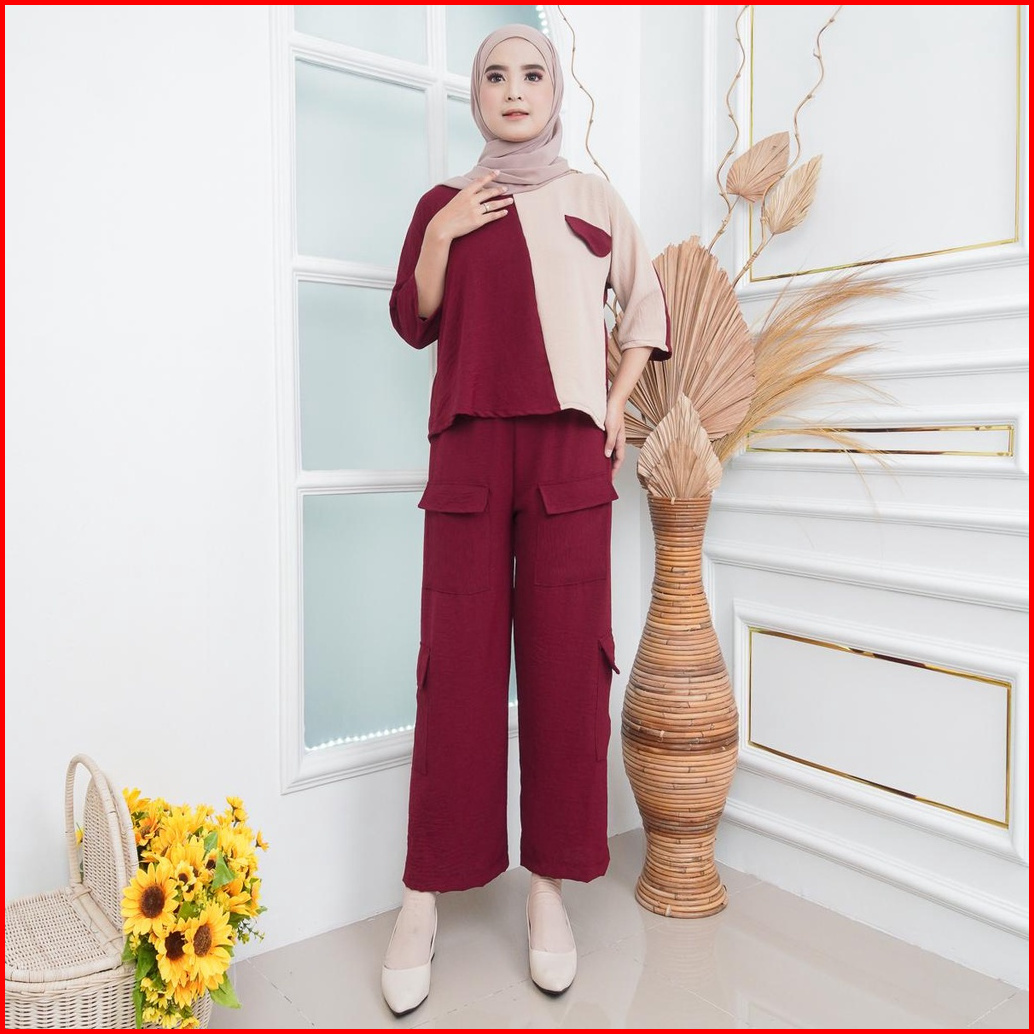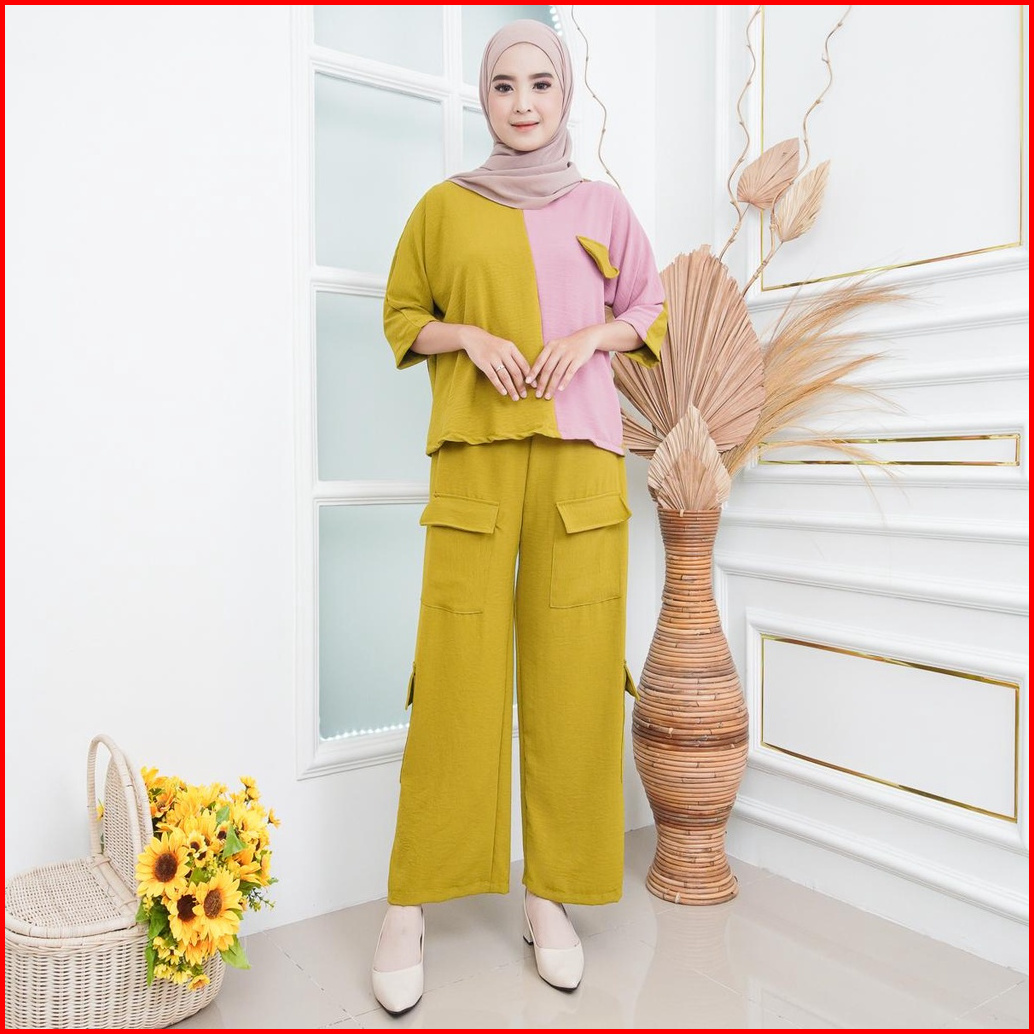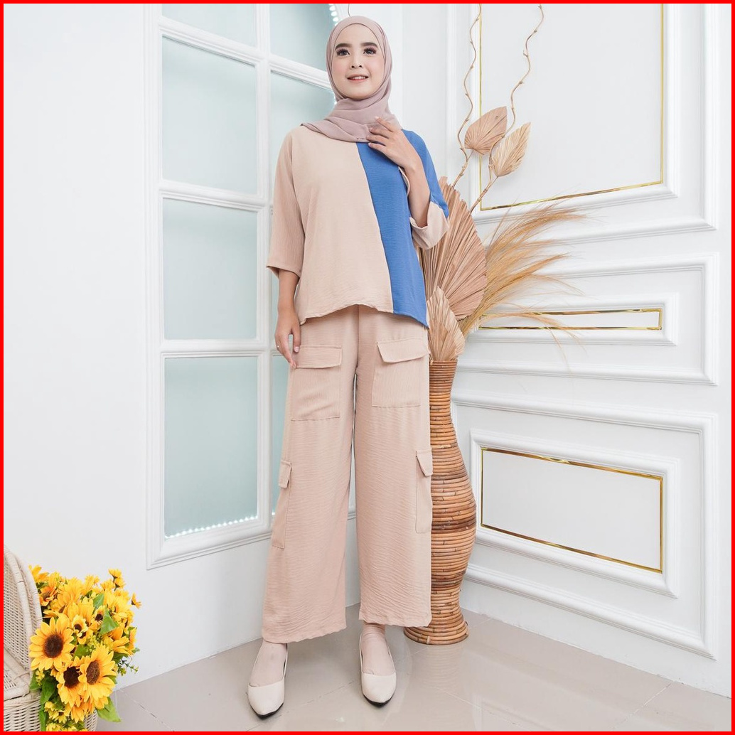 Il - Setelan One Set Wanita Morena Cringkel Airflow Kombinasi 2 Warna